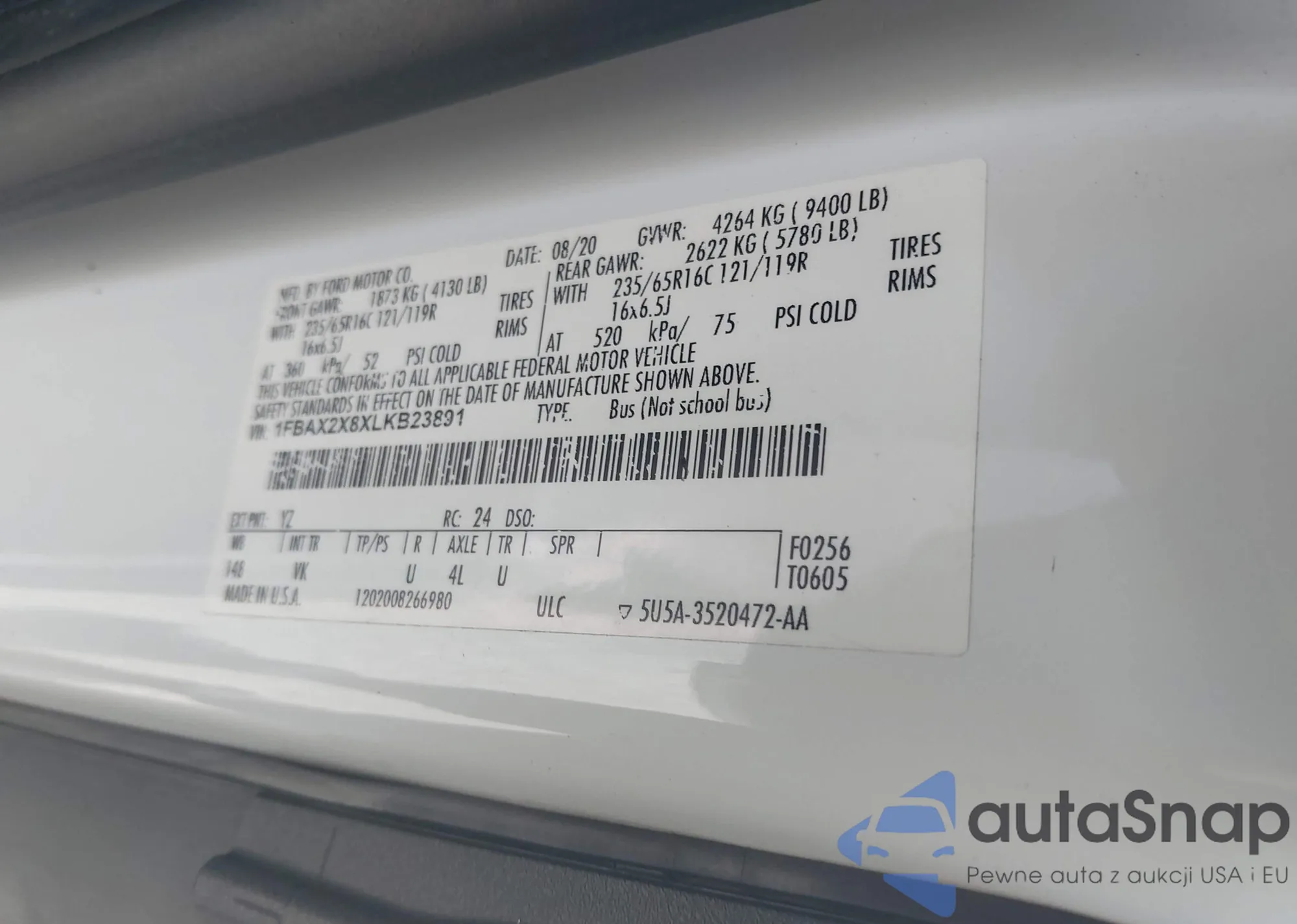LOT: 44167168 VIN: 1FBAX2X8XLKB23891