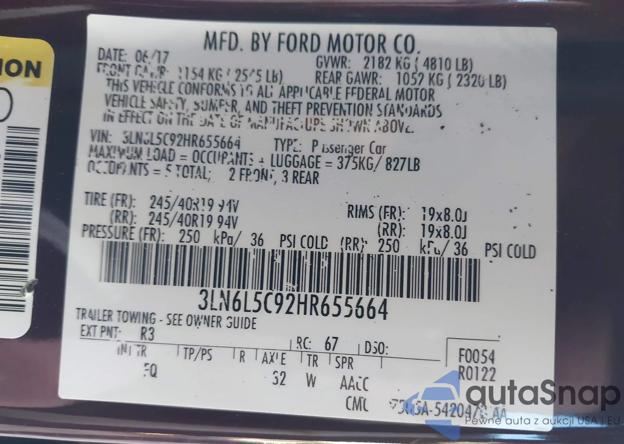 LOT: 43942936 VIN: 3LN6L5C92HR655664