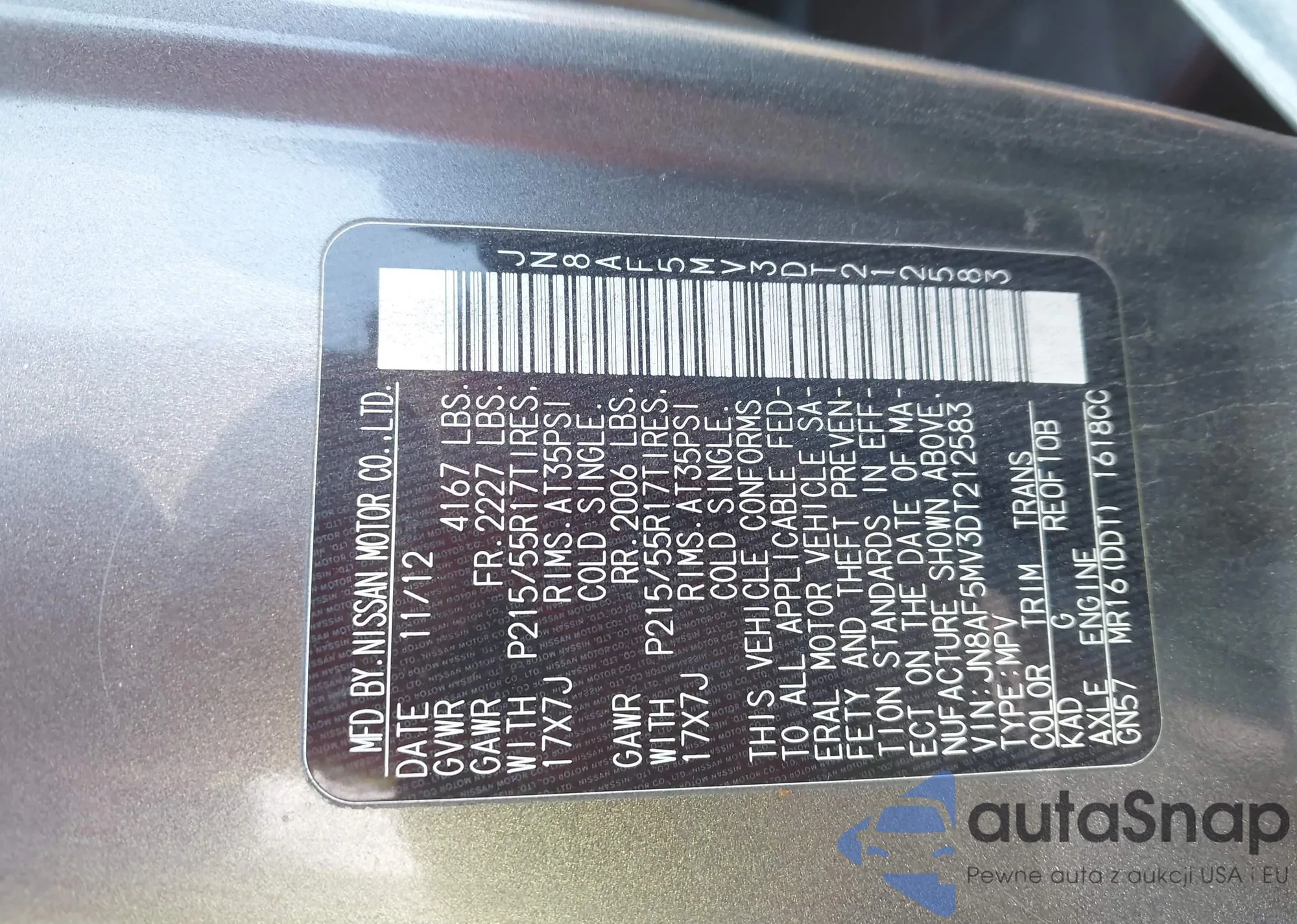 LOT: 44157393 VIN: JN8AF5MV3DT212583