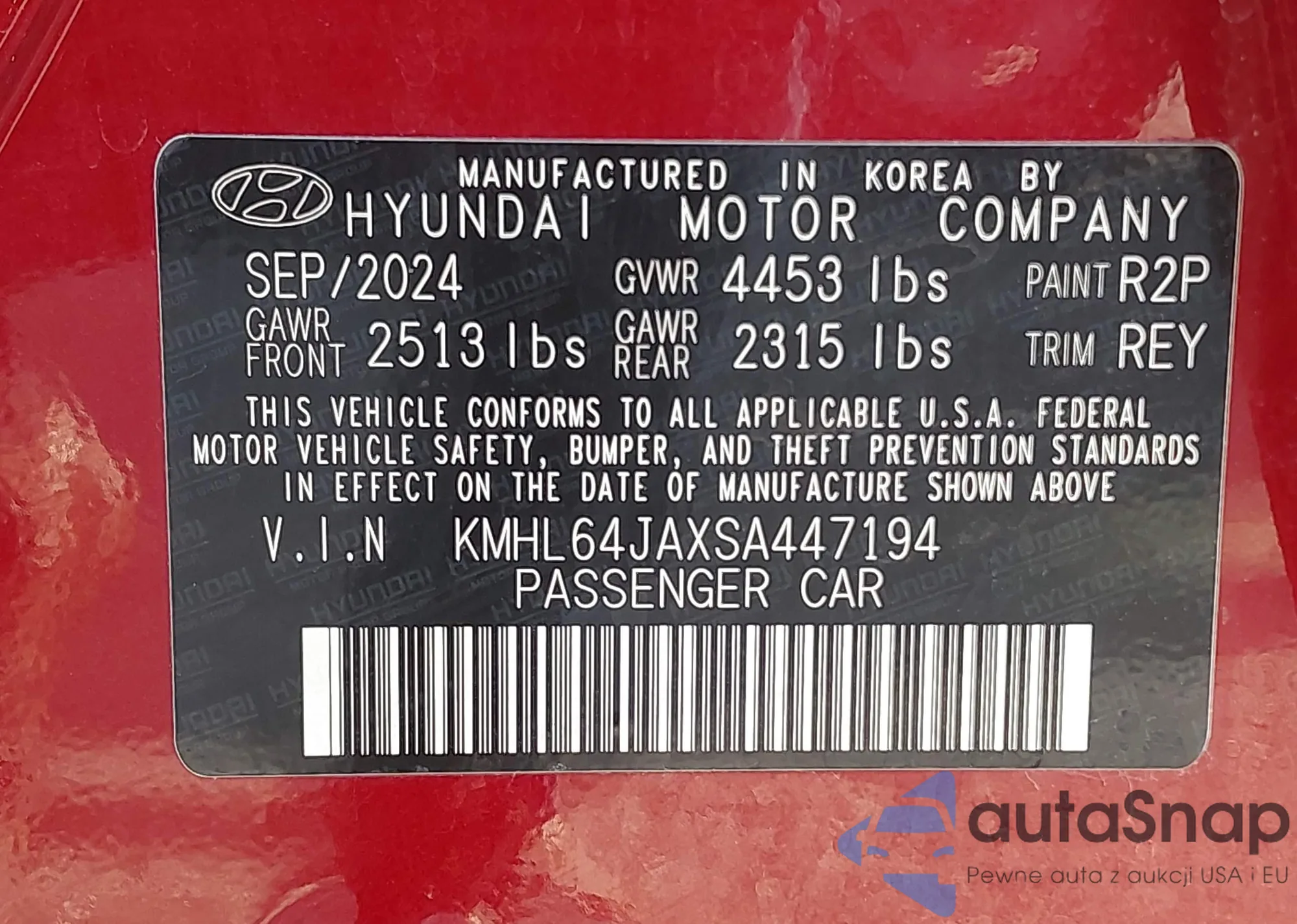 • VIN KMHL64JAXSA447194
