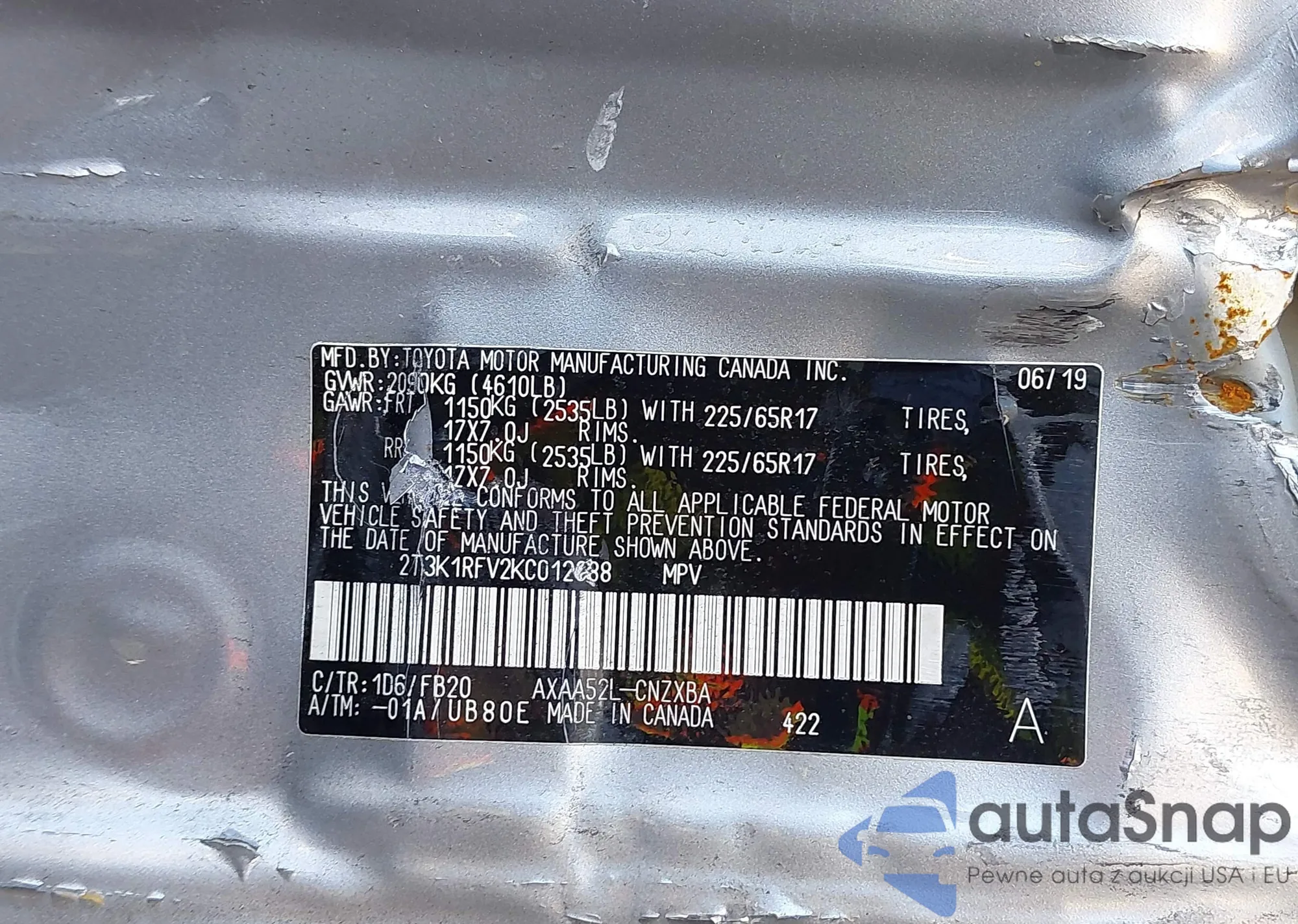 LOT: 43711472 VIN: 2T3K1RFV2KC012888