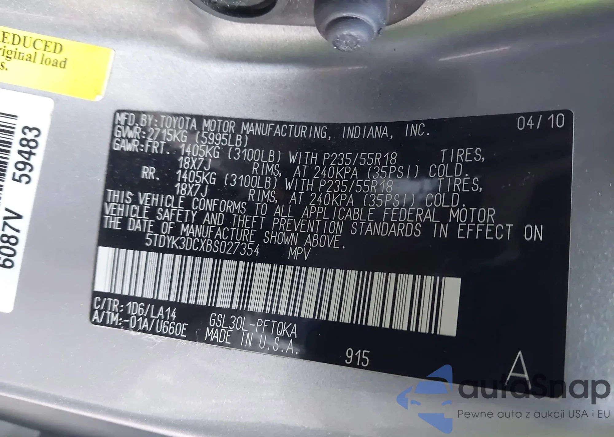 • VIN 5TDYK3DCXBS027354