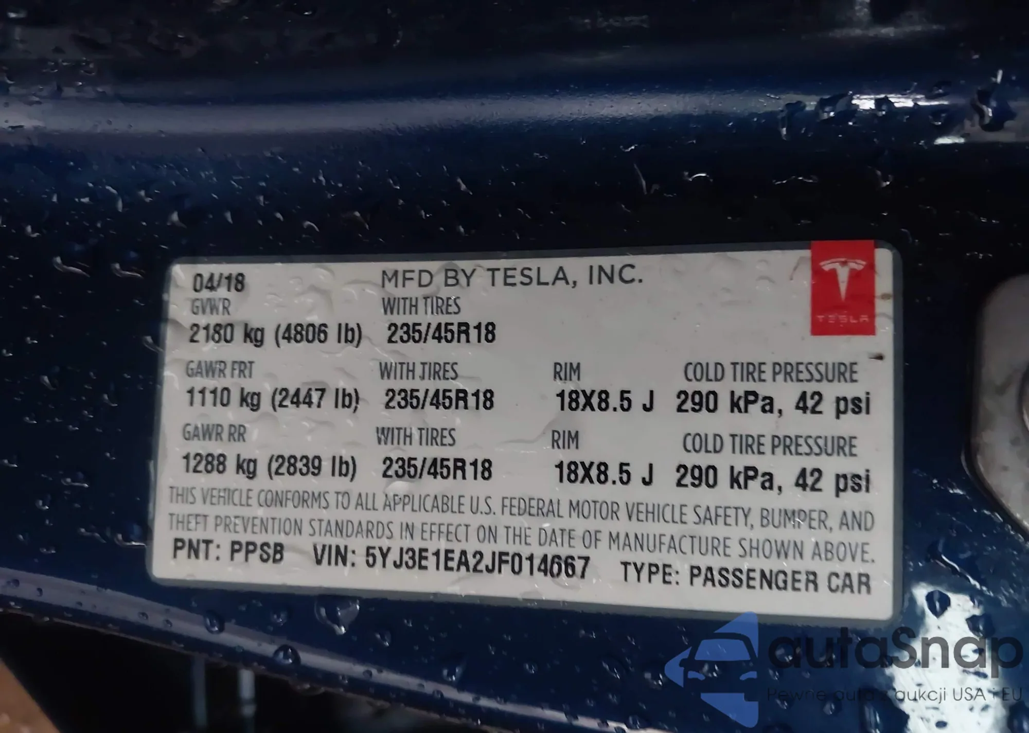 • VIN 5YJ3E1EA2JF014667