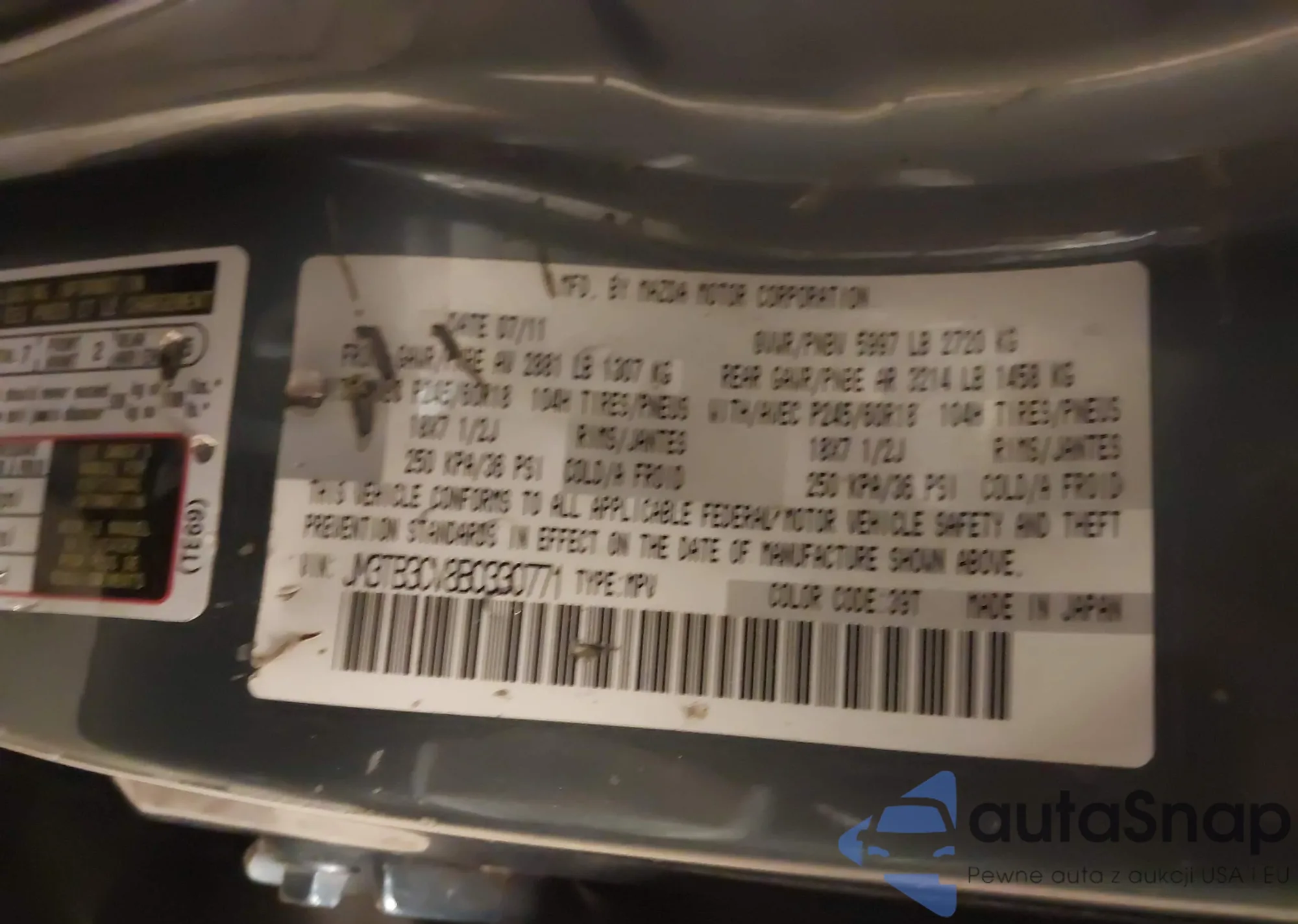 • VIN JM3TB3CV8B0330771