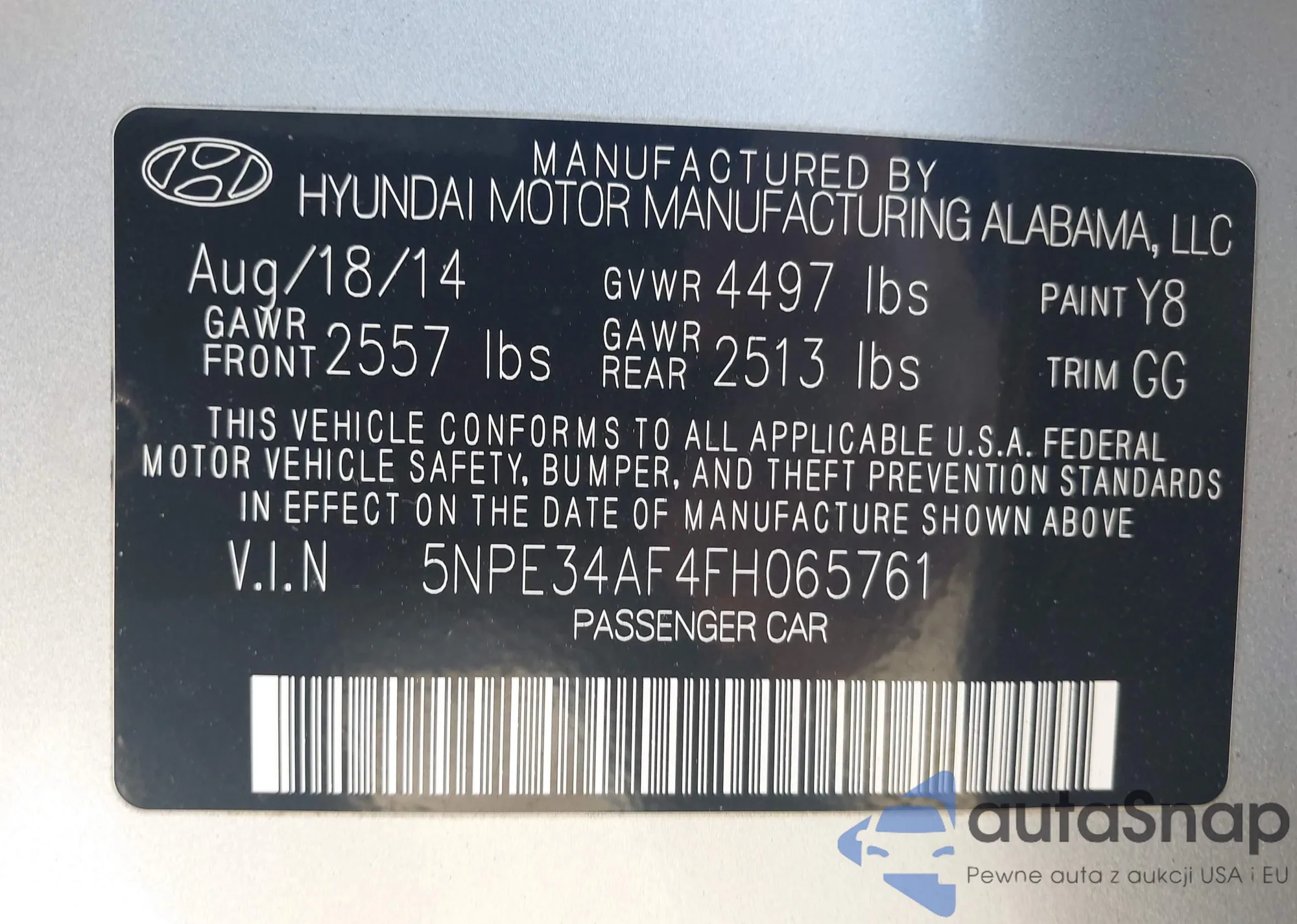 • VIN 5NPE34AF4FH065761