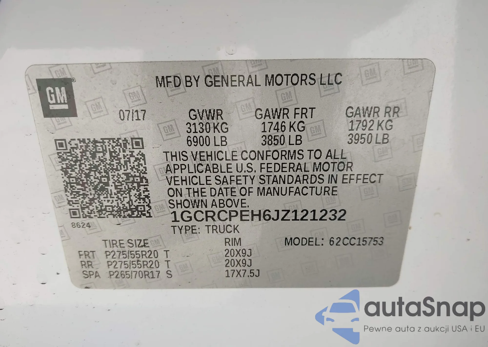 • VIN 1GCRCPEH6JZ121232