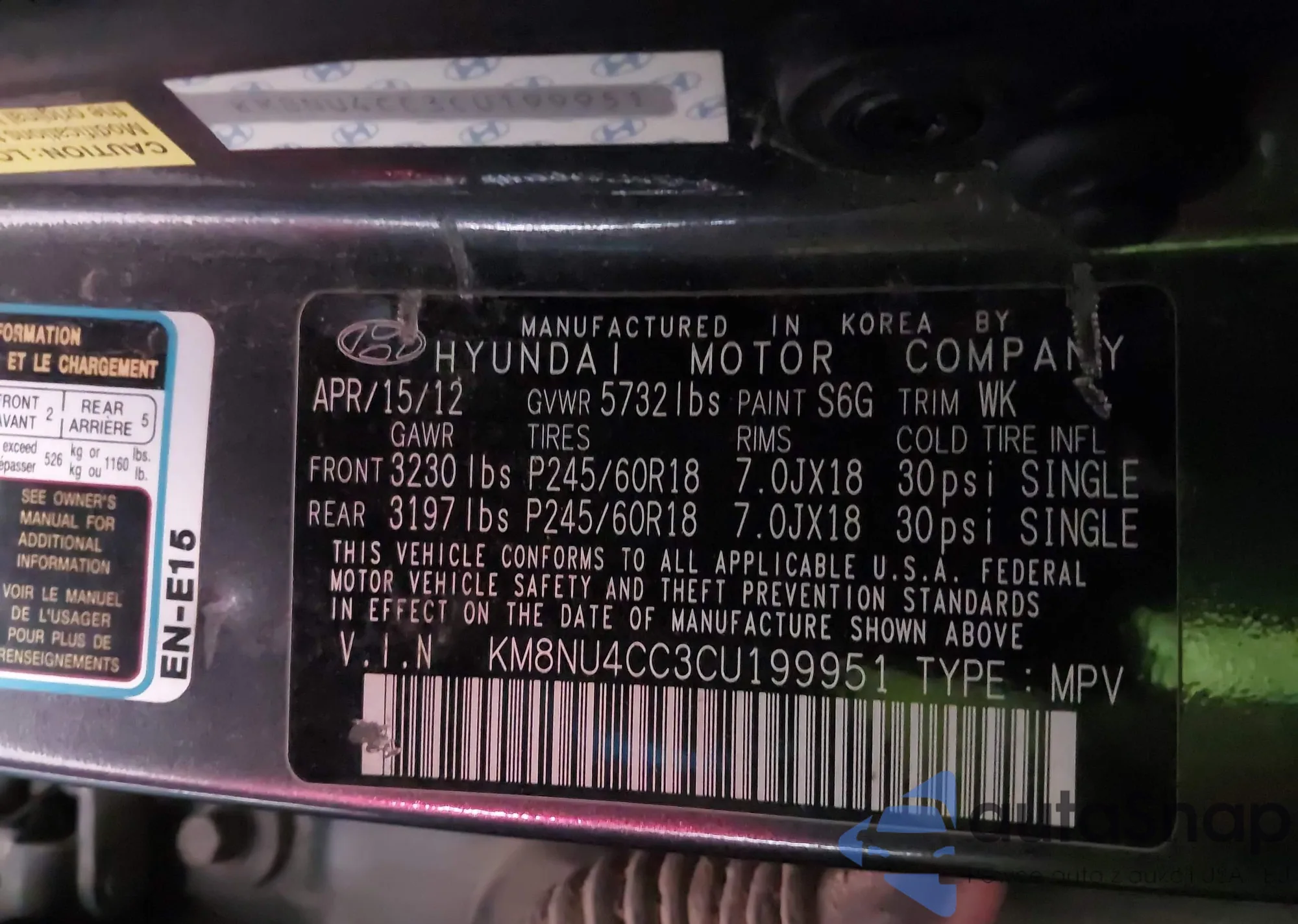 • VIN KM8NU4CC3CU199951