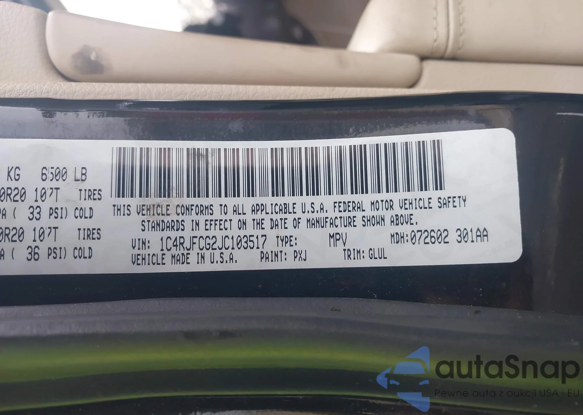 • VIN 1C4RJFCG2JC103517