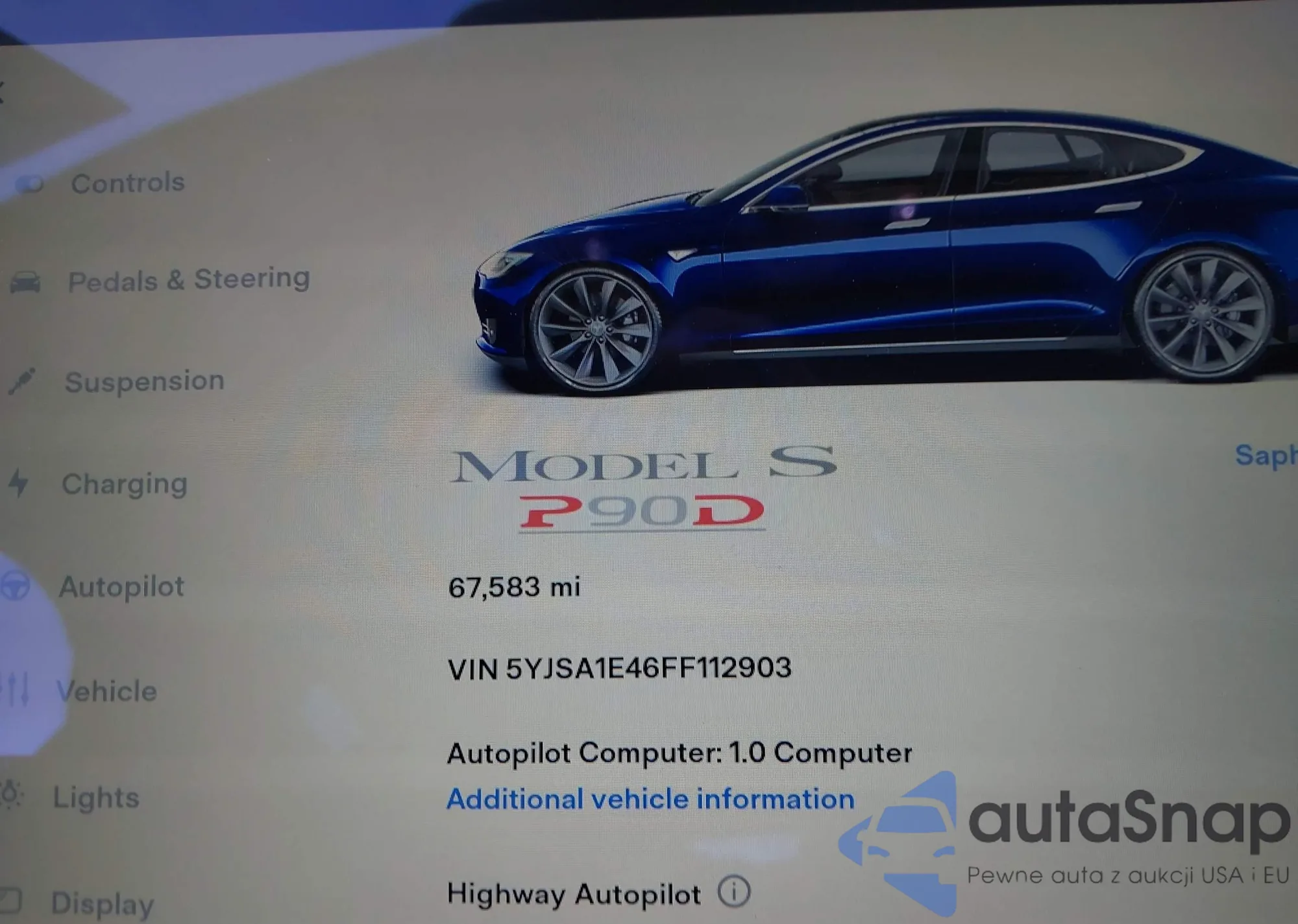 2015 Tesla Model S 85D/P85D from USA, damaged, VIN 5YJSA1E46FF112903