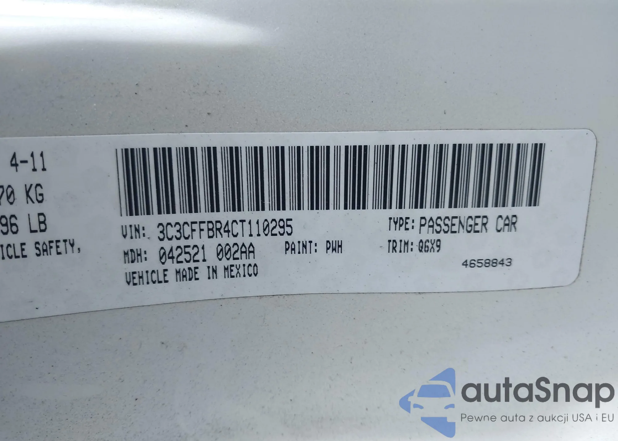 • VIN 3C3CFFBR4CT110295