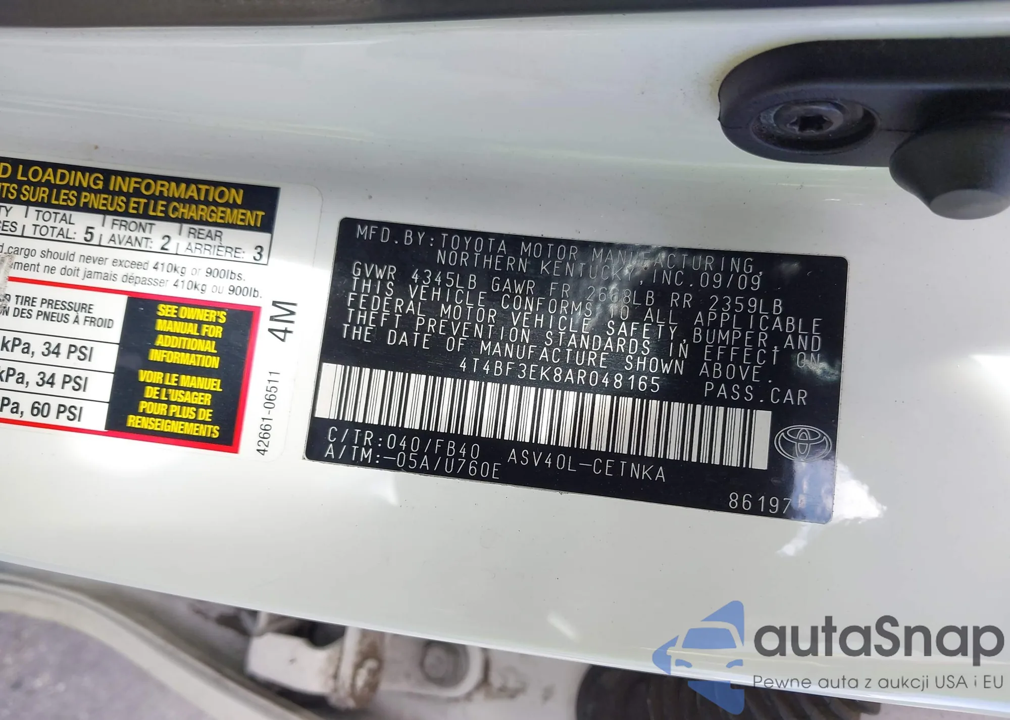 • VIN 4T4BF3EK8AR048165