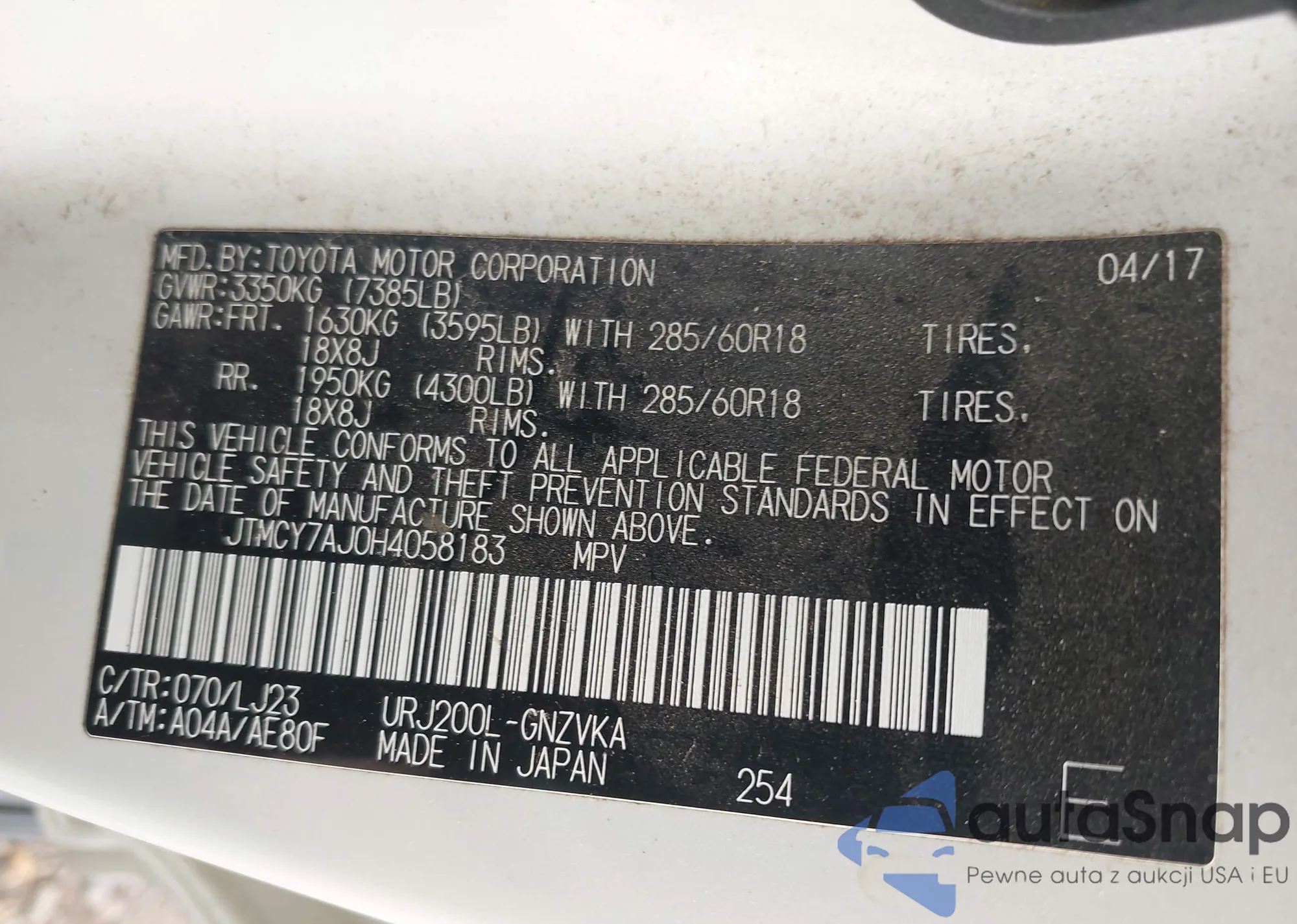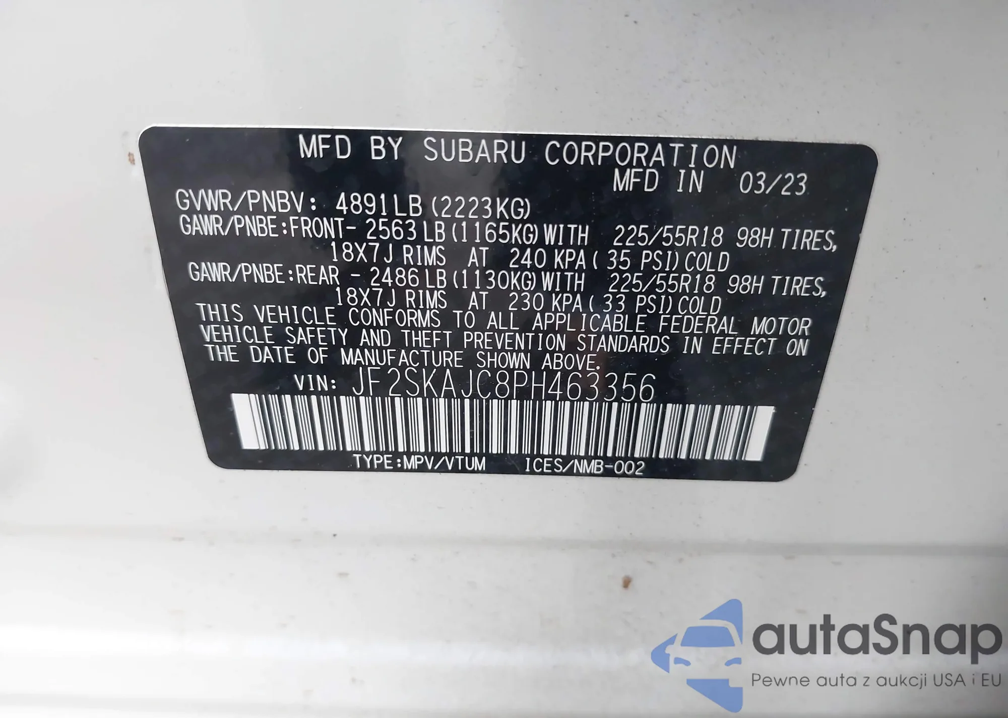 • VIN JF2SKAJC8PH463356