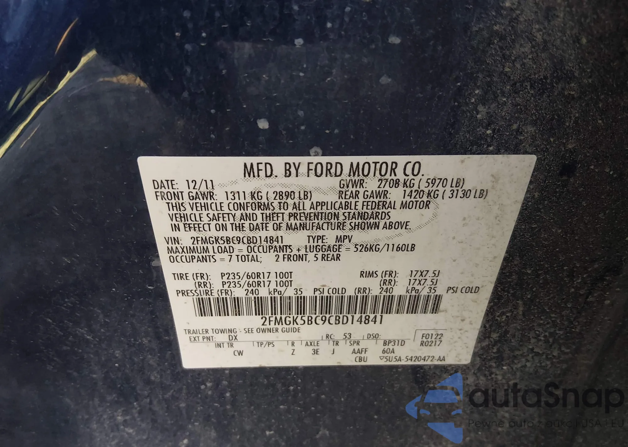 LOT: 44035208 VIN: 2FMGK5BCXABB22289