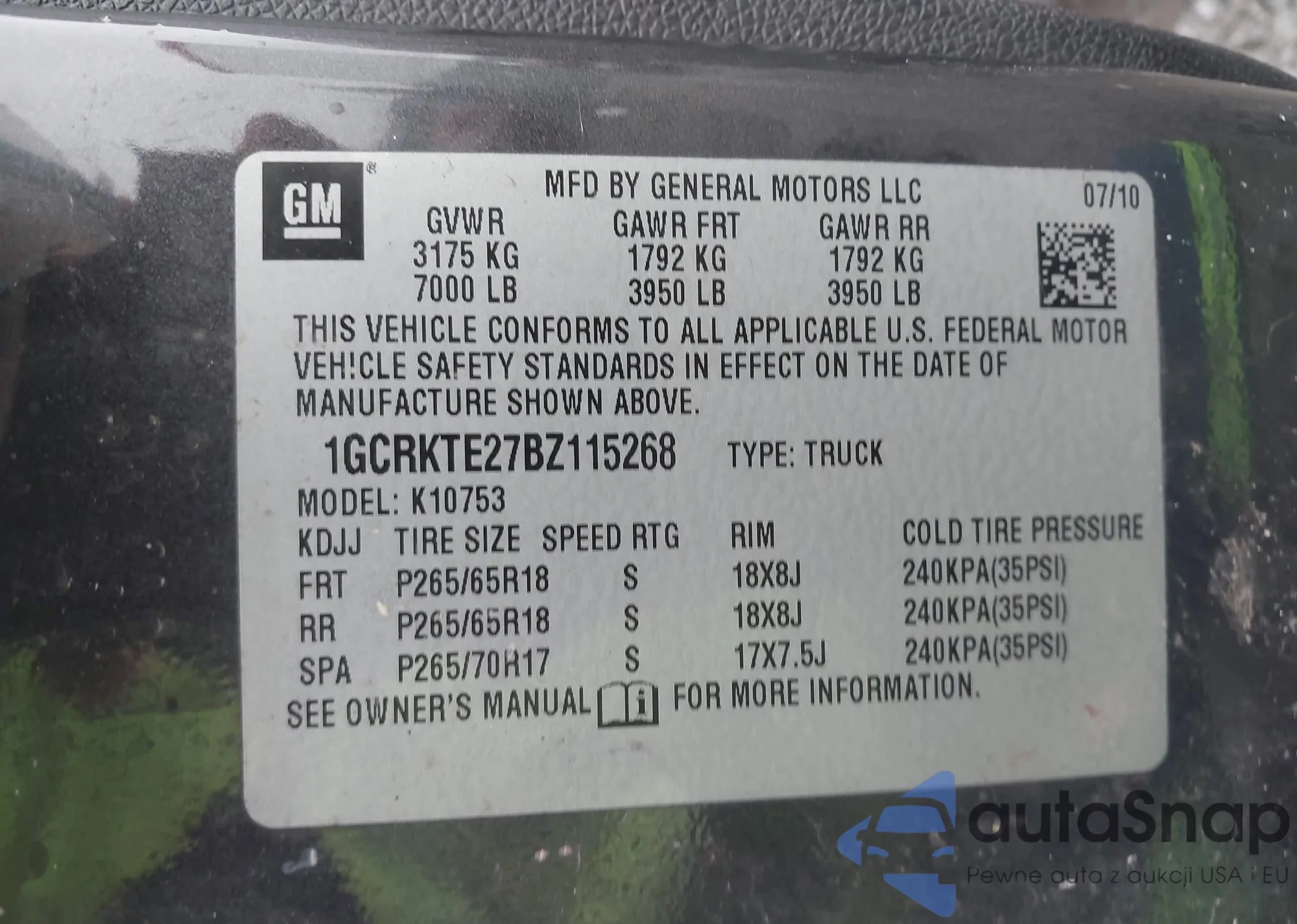 • VIN 1GCRKTE27BZ115268