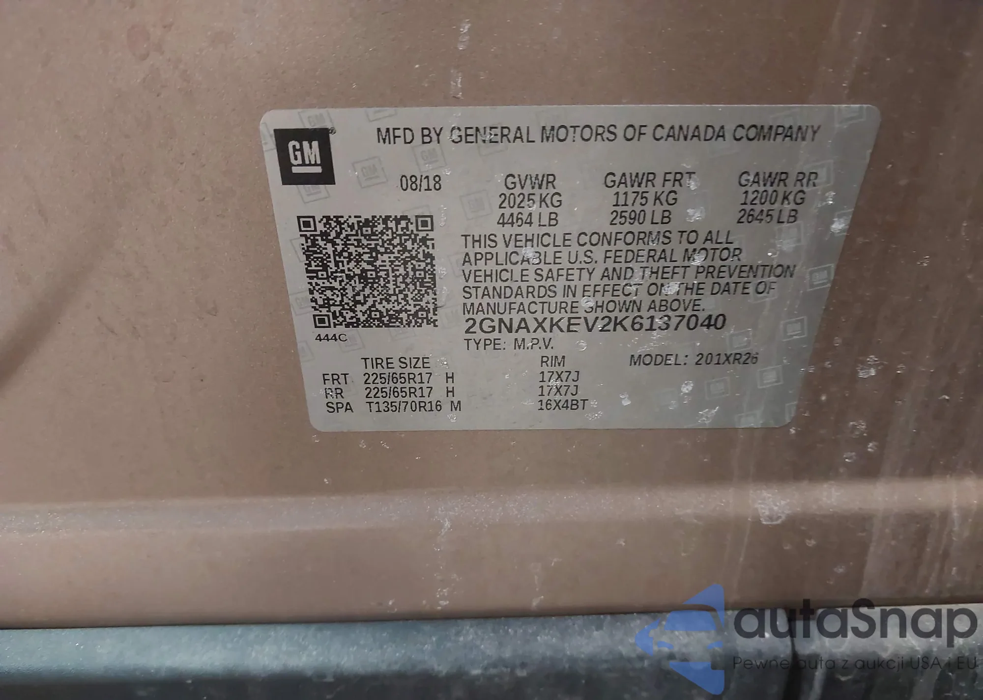 • VIN 2GNAXKEV2K6137040
