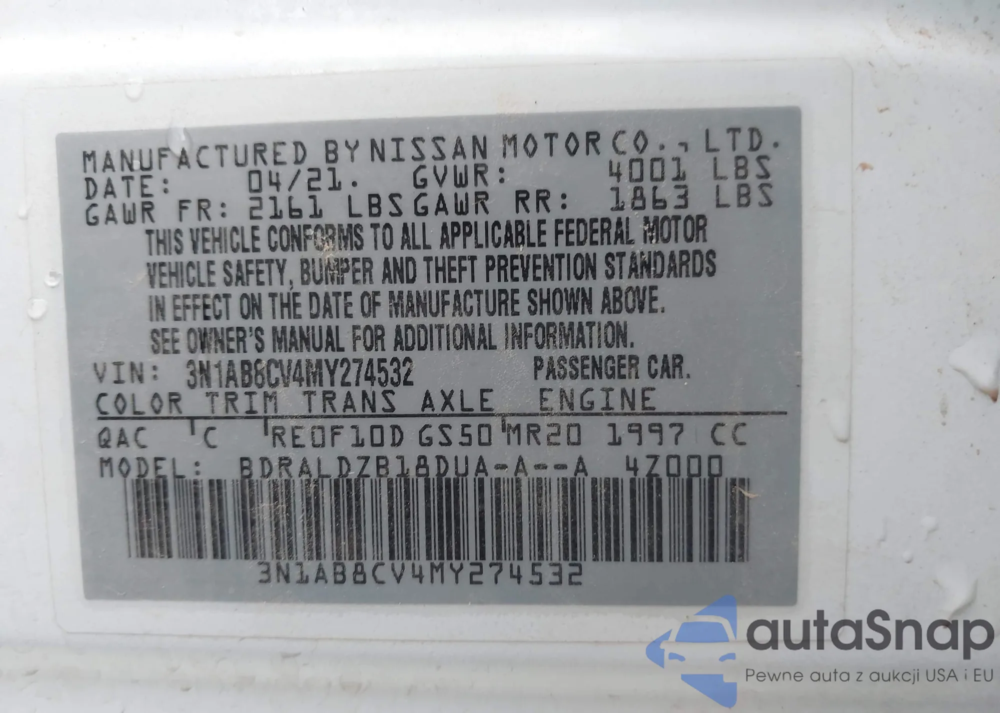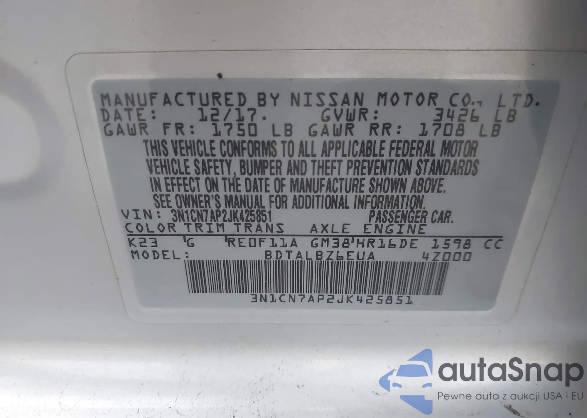 • VIN 1N4BL4BVXKC204070
