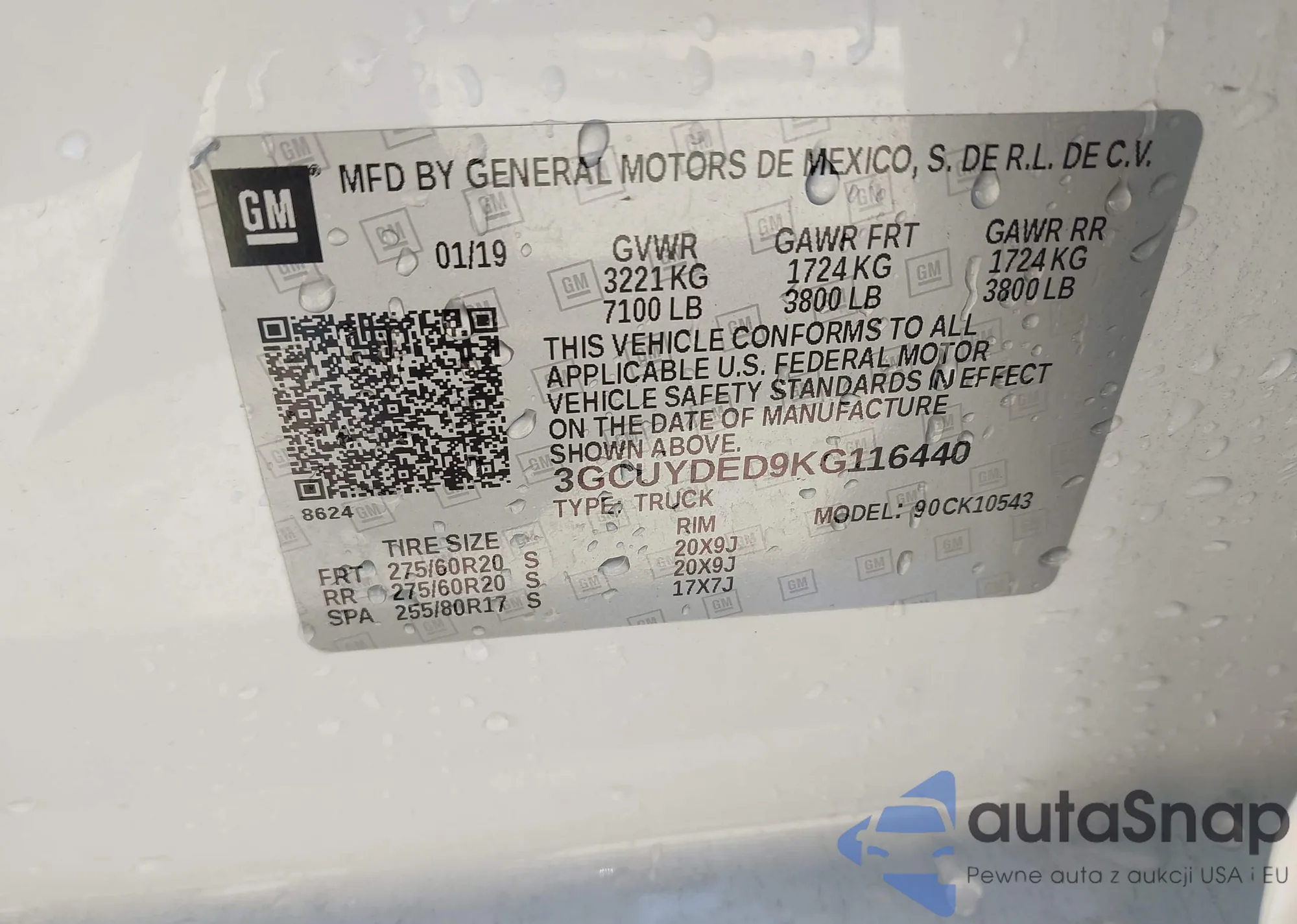 • VIN 3GCUYDED9KG116440