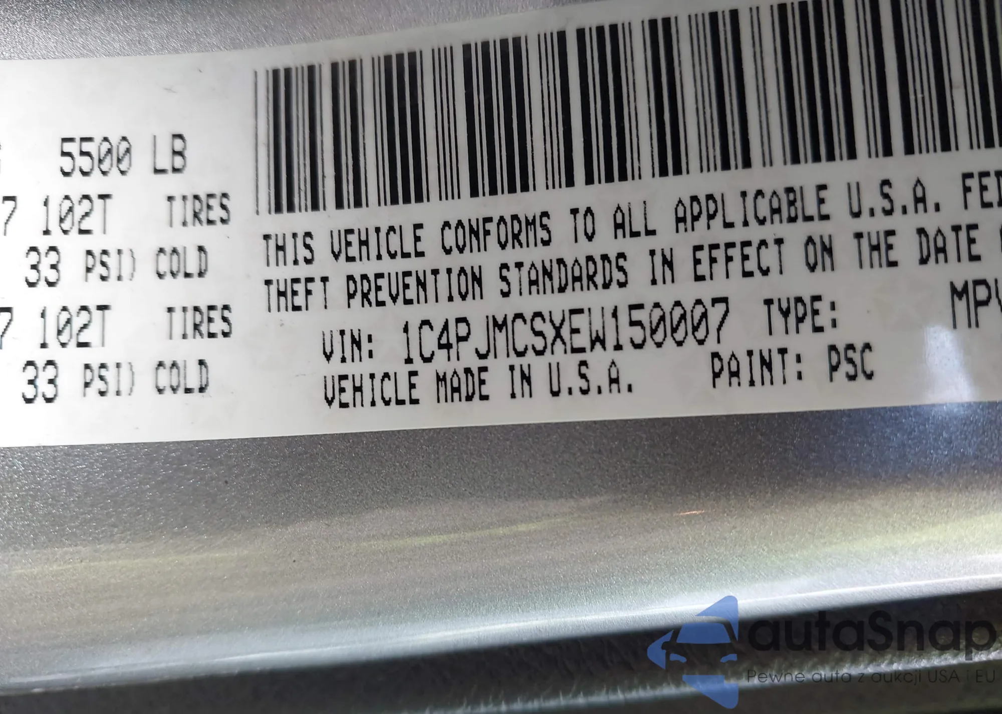 LOT: 44133565 VIN: 1C4PJMCSXEW150007