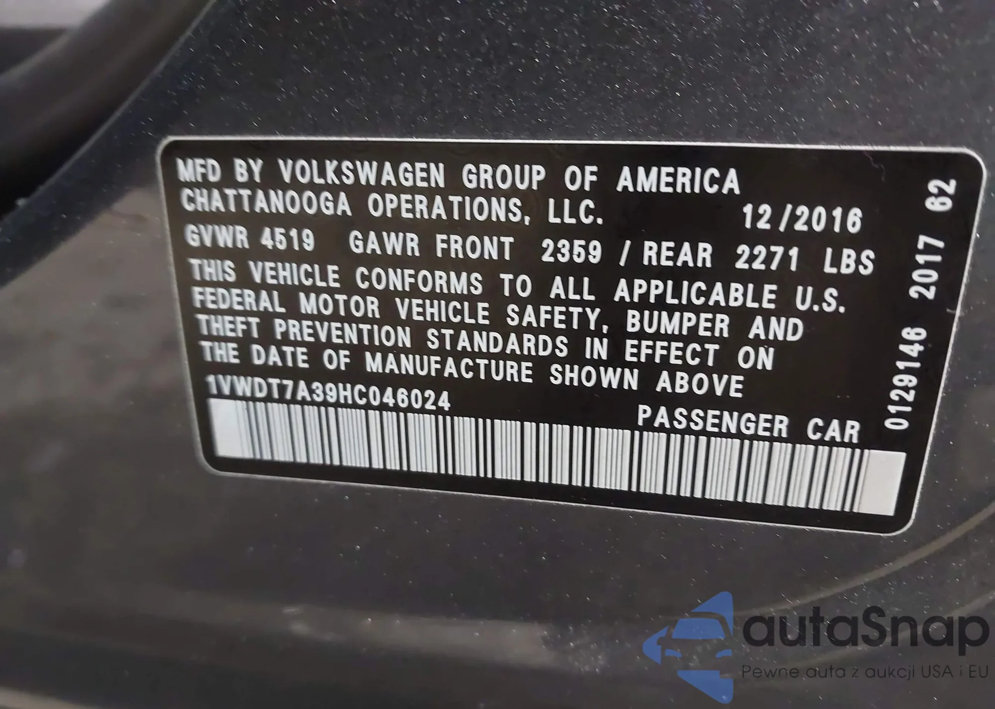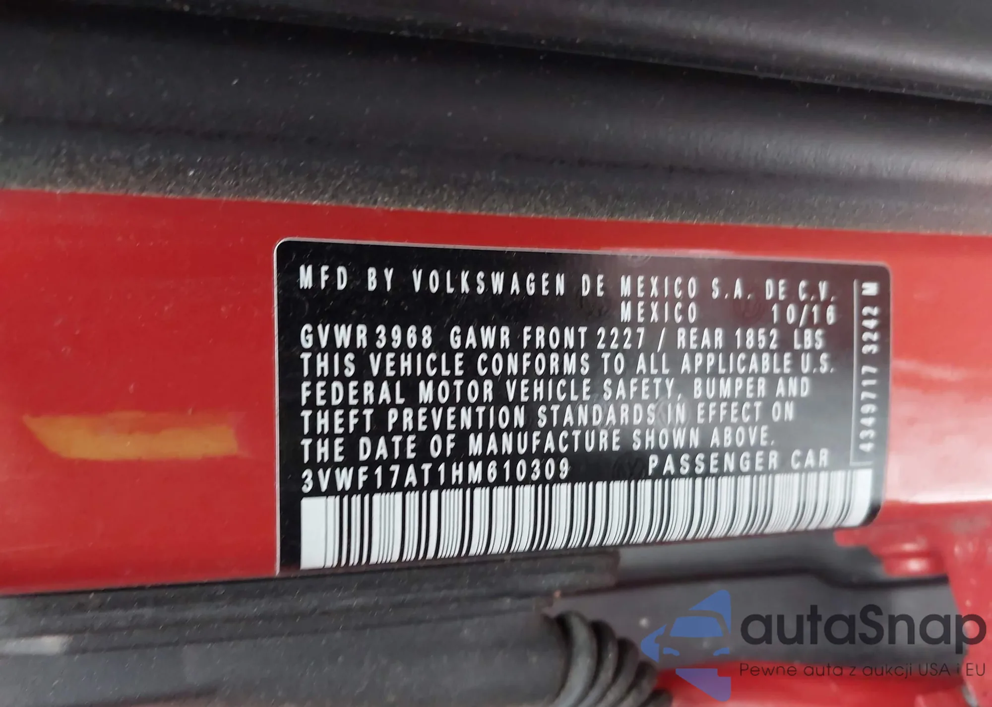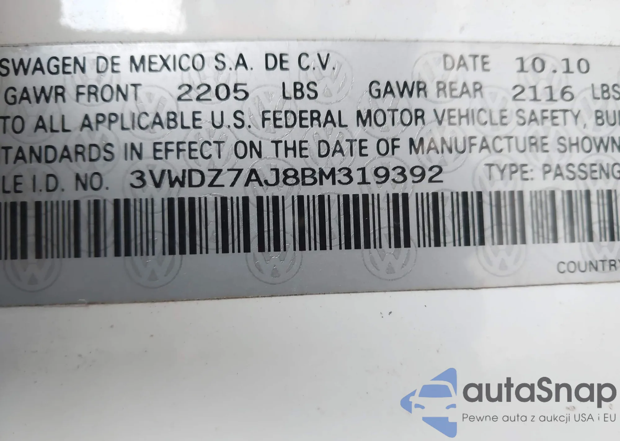• VIN 3VWDZ7AJ8BM319392