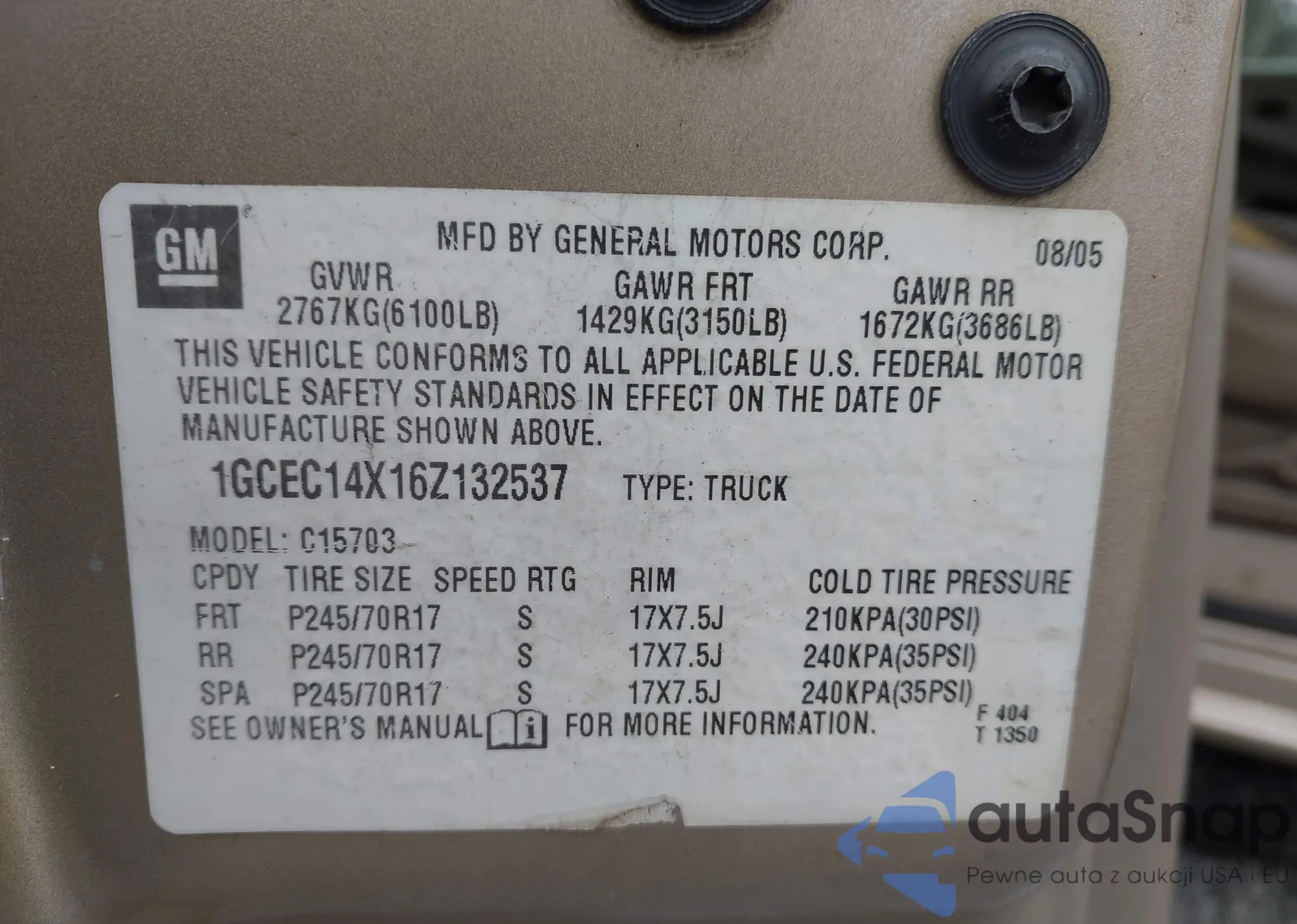 • VIN 1GCEC14X16Z132537