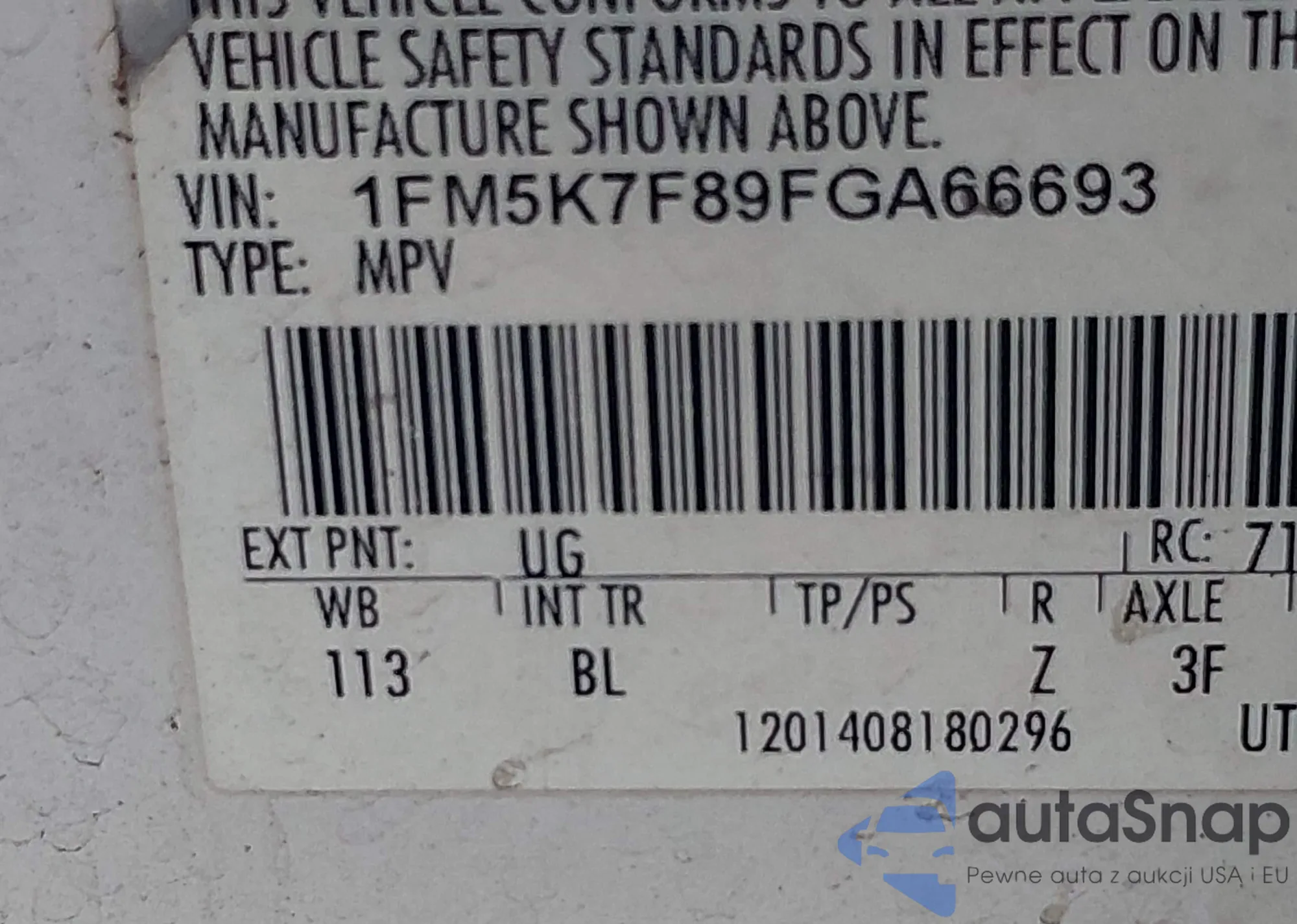 • VIN 1FM5K7F89FGA66693