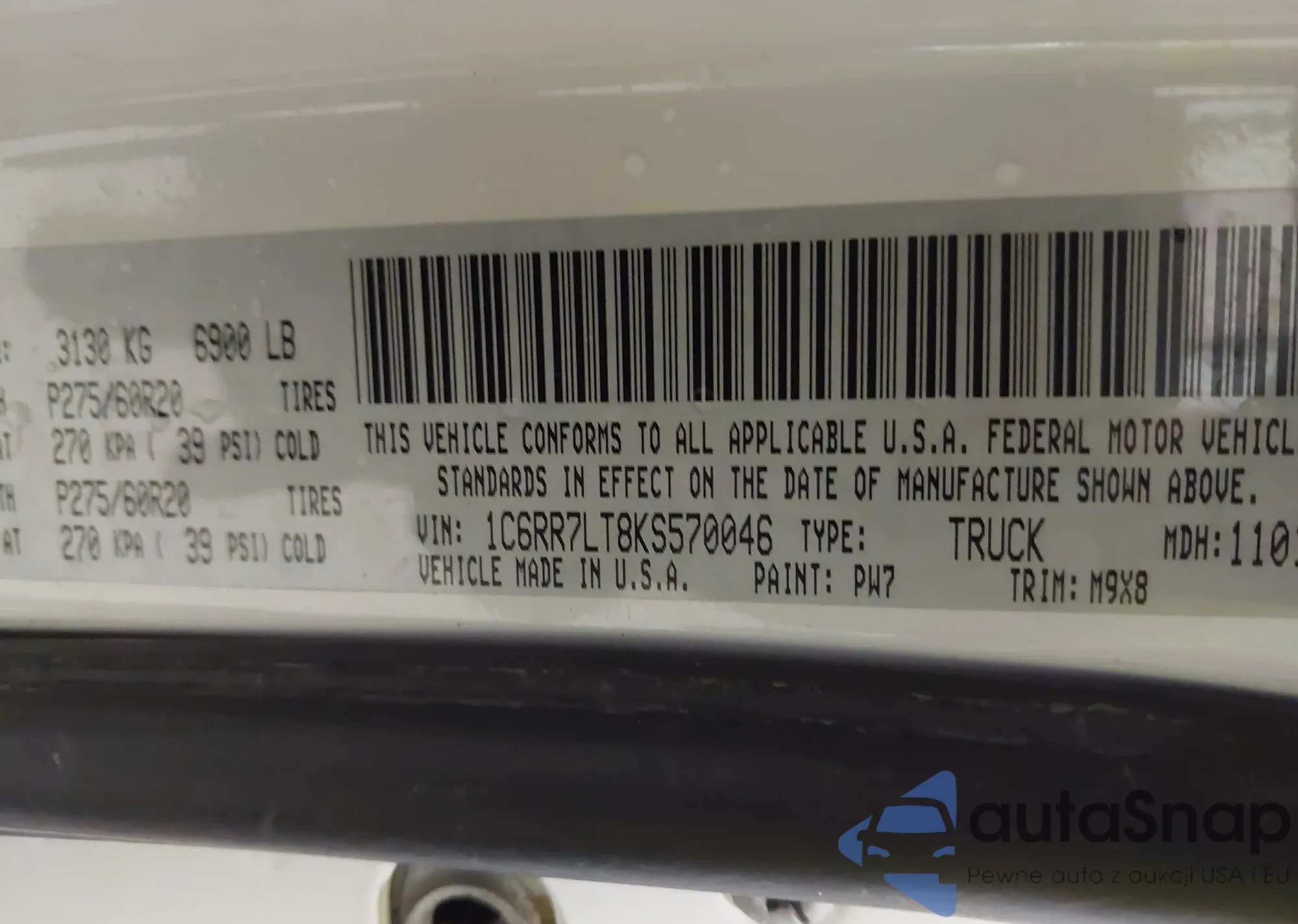 • VIN 3C6RR7LT2HG505886
