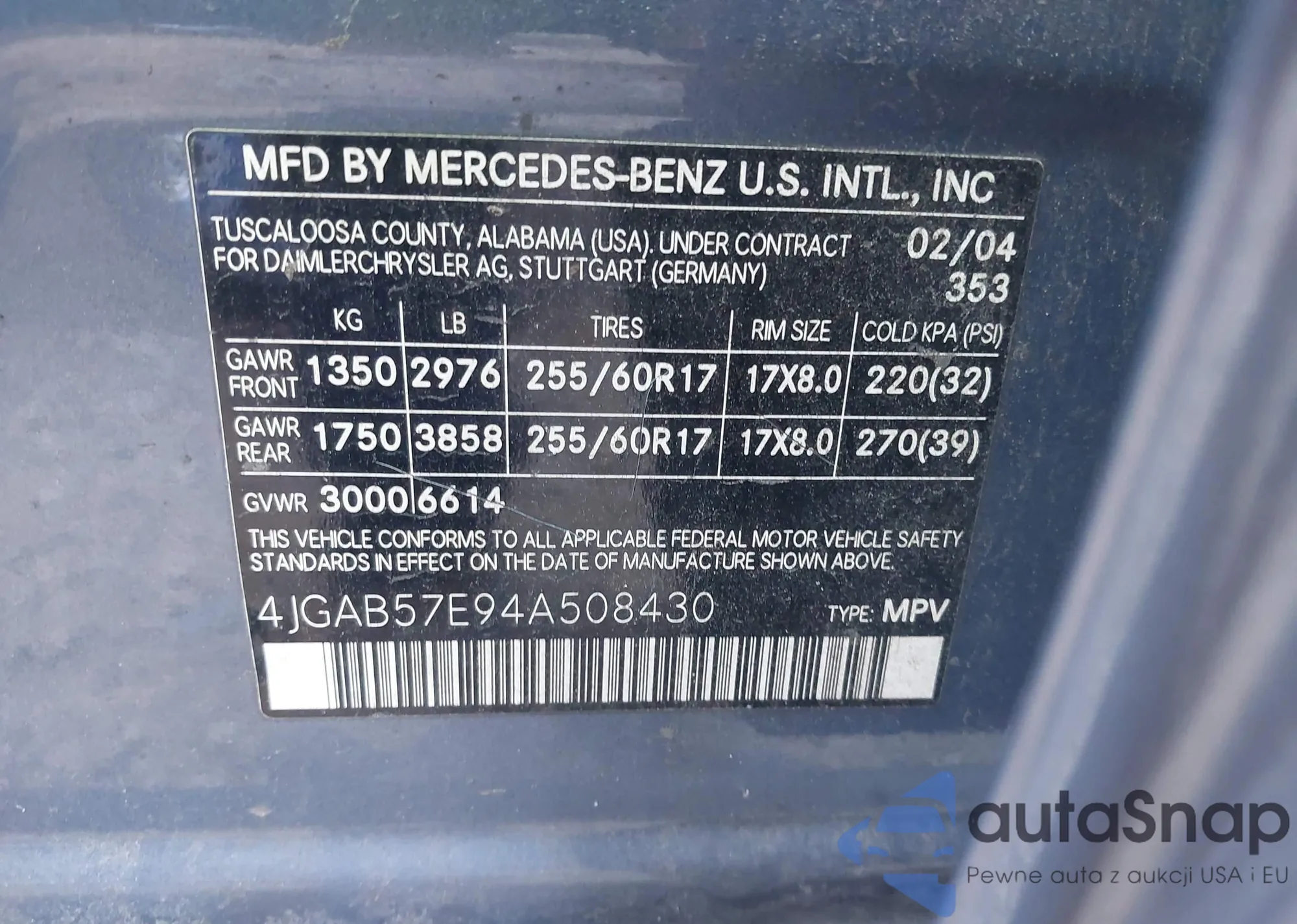 • VIN 4JGAB57E94A508430