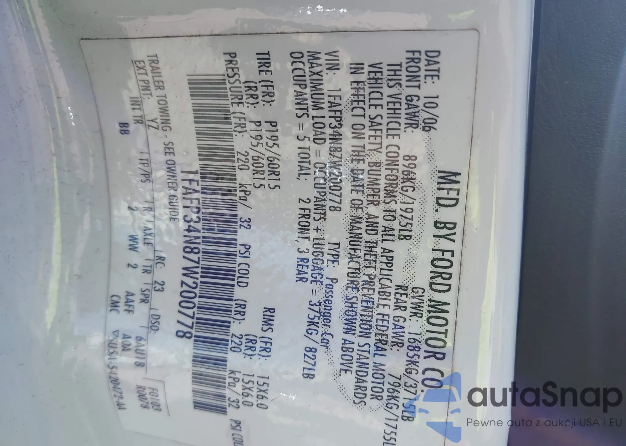 LOT: 43395388 VIN: 1FM5K7F89FGA66693