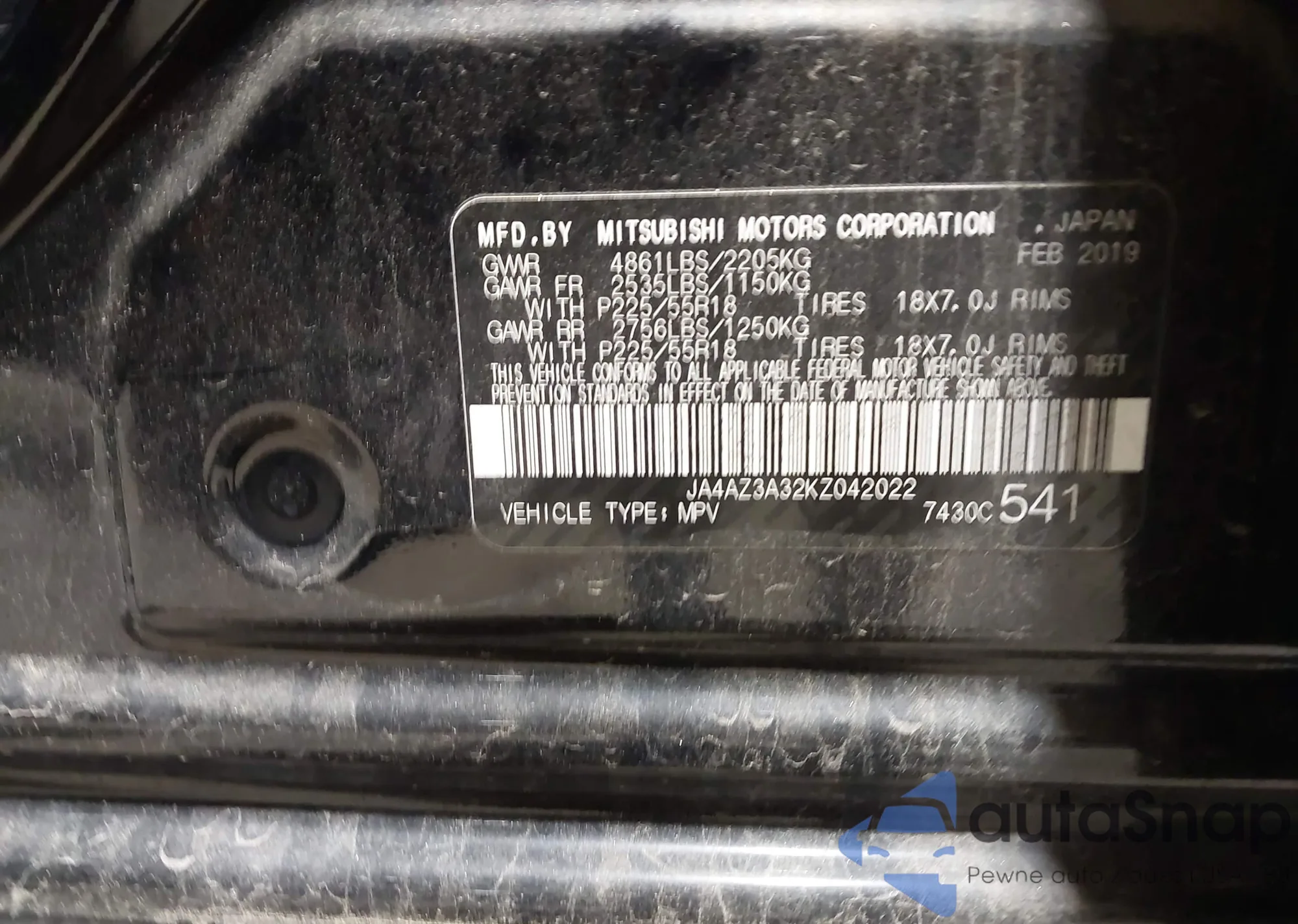 • VIN JA4AZ3A32KZ042022