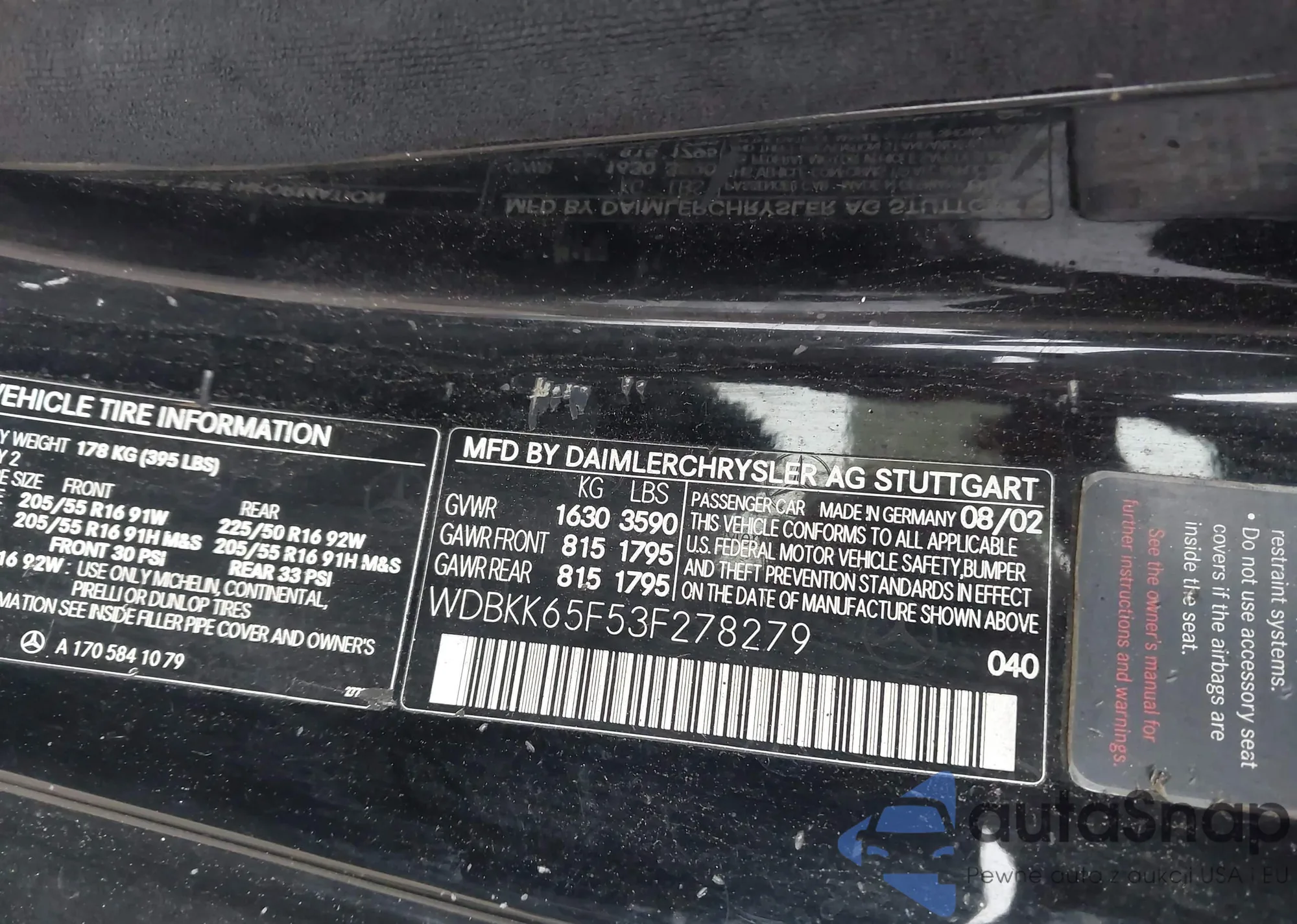 • VIN WDBKK65F53F278279