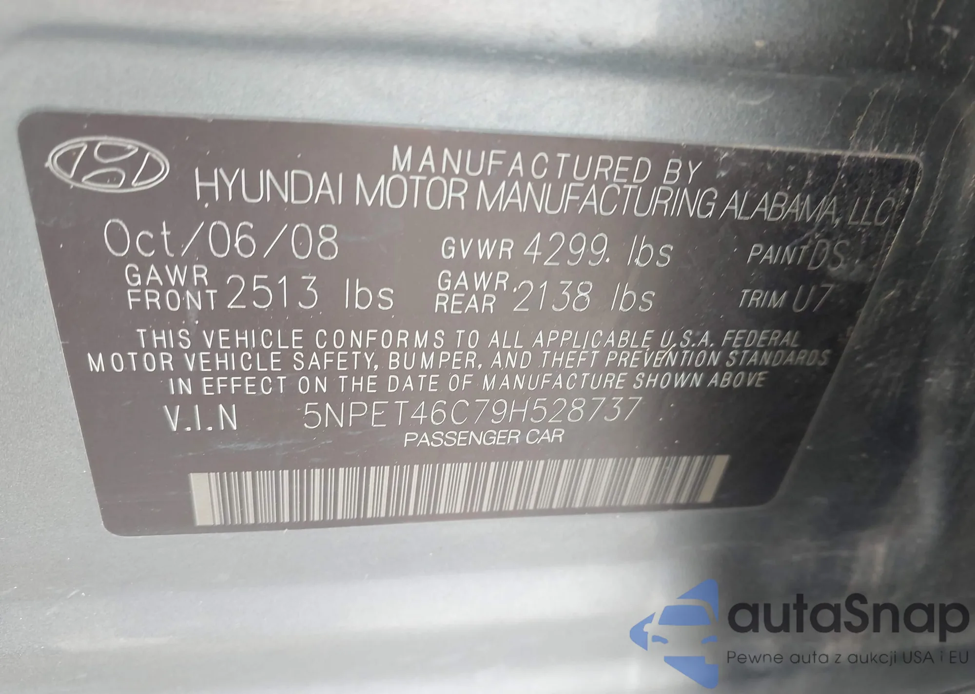 LOT: 43732627 VIN: 5NPET46C79H528737
