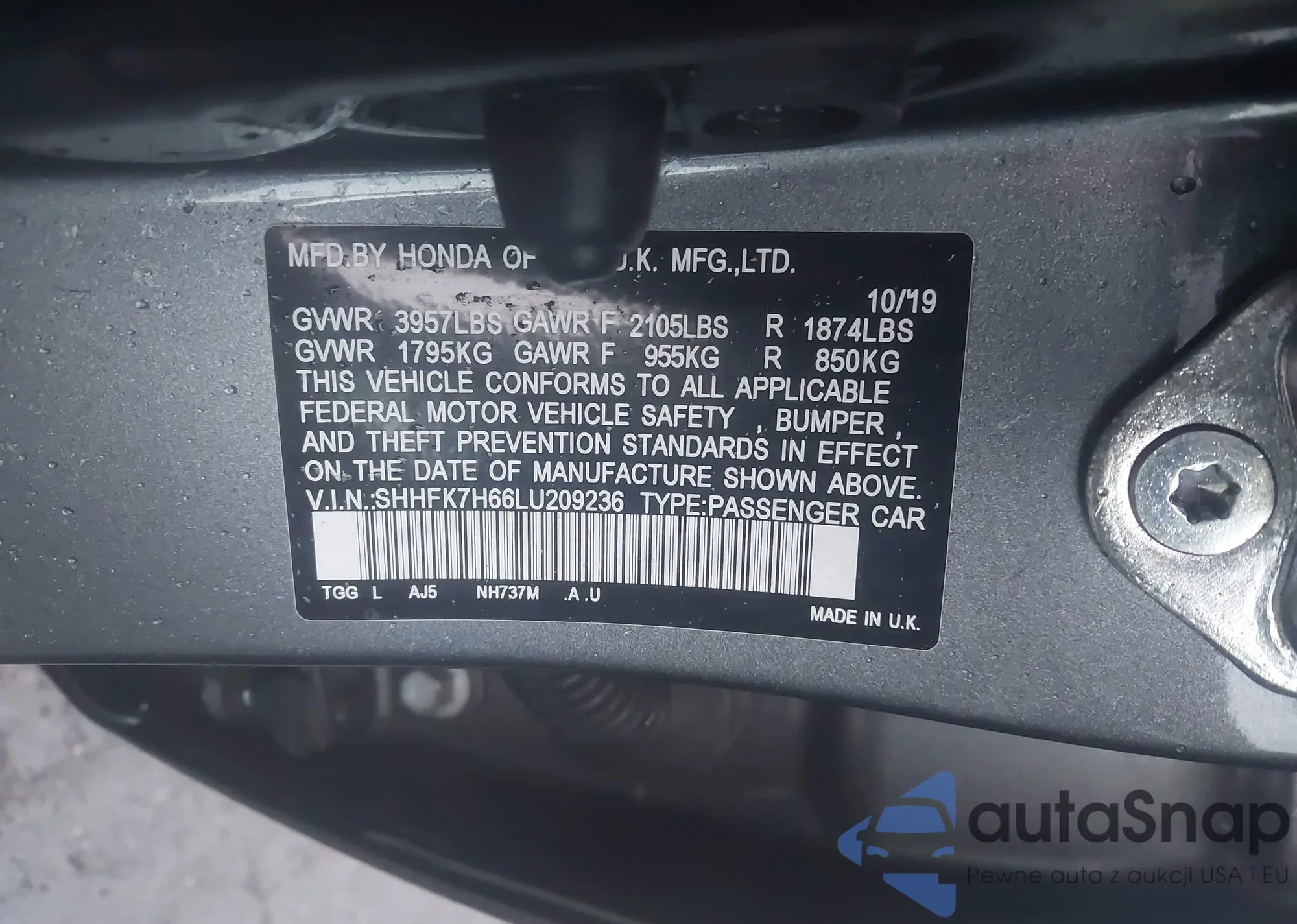 LOT: 43927532 VIN: 1HGFA16596L112921