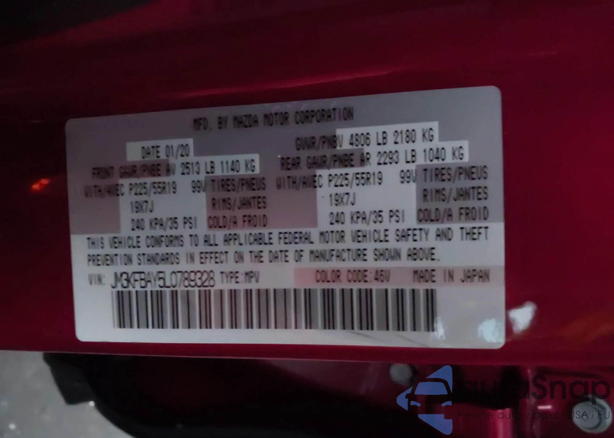 LOT: 43996139 VIN: JM3KFBAY5L0789328
