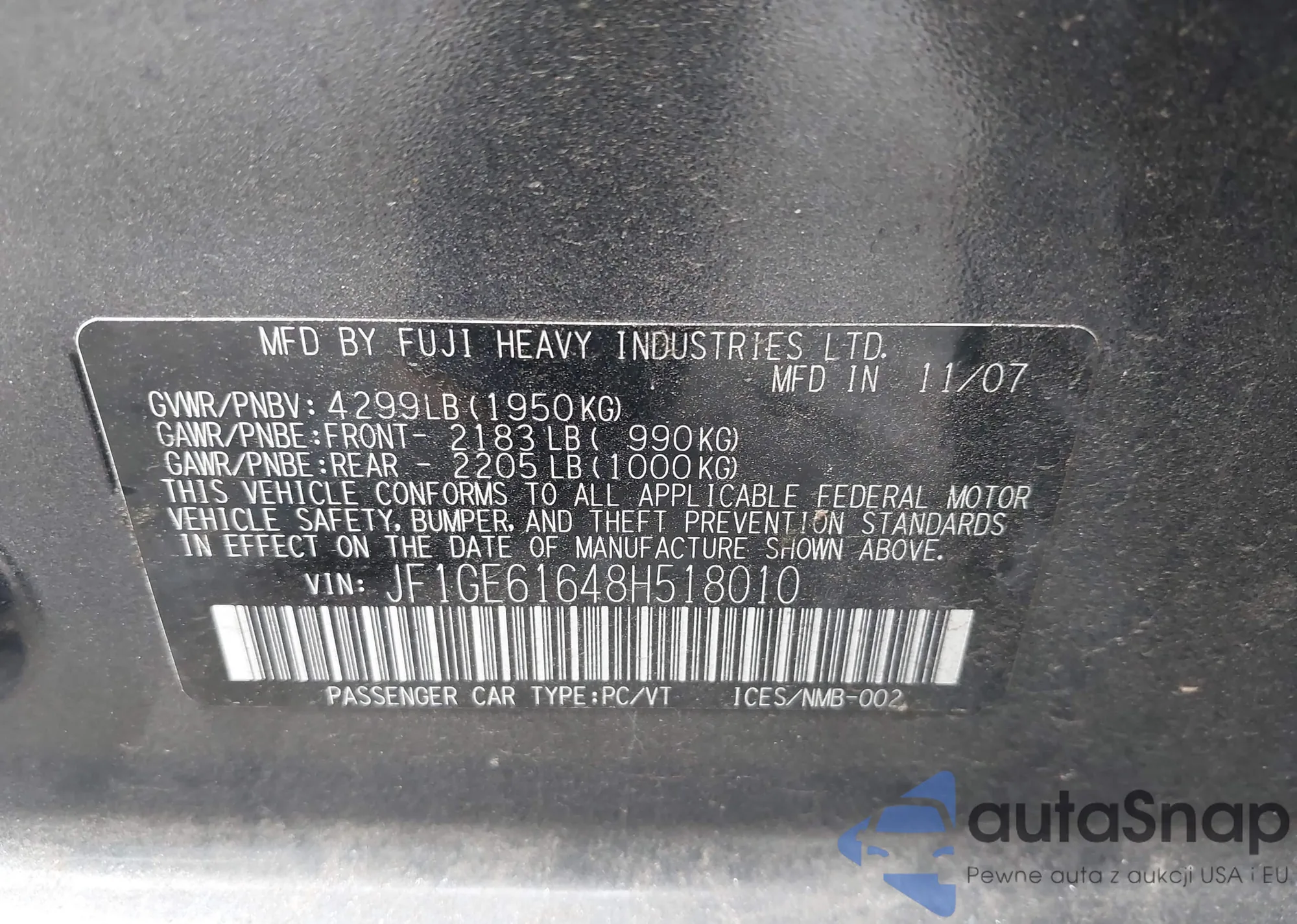 LOT: 44004237 VIN: JF1GE61648H518010