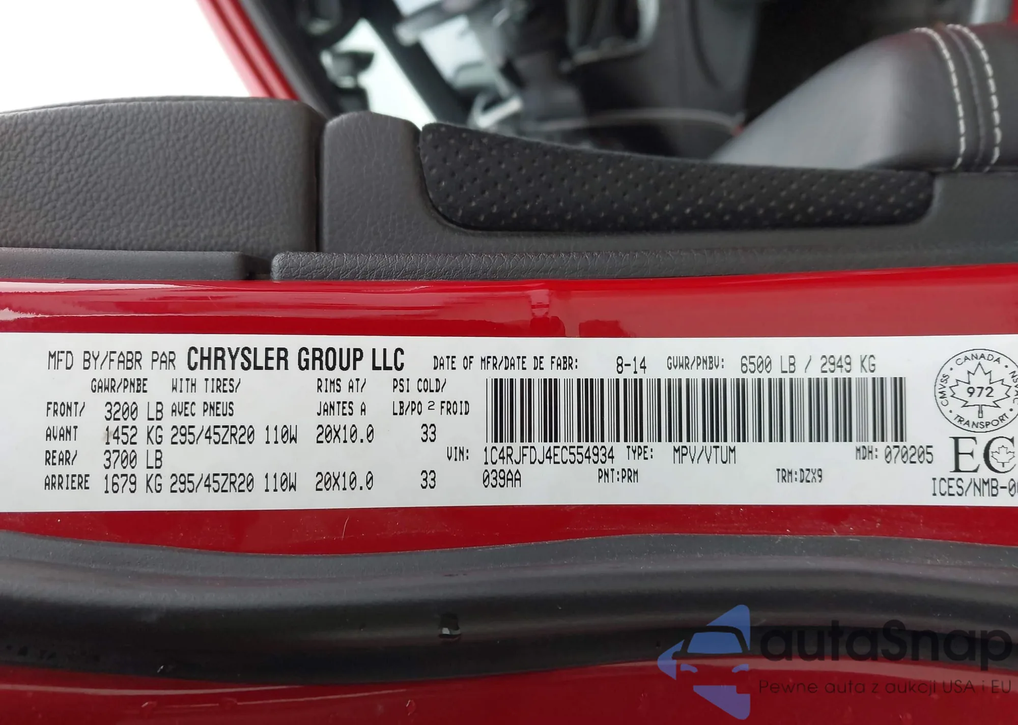 • VIN 1C4RJFDJ4EC554934