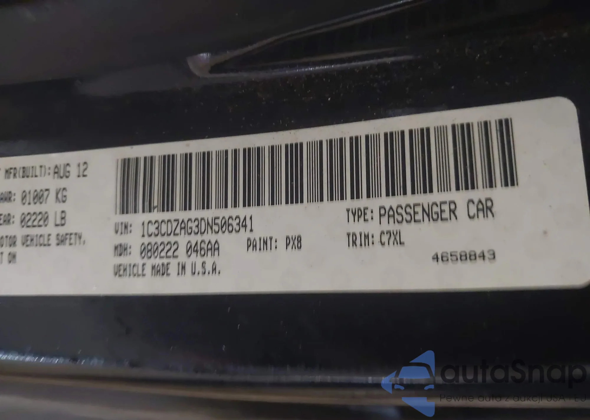 • VIN 1C3CDZAG3DN506341