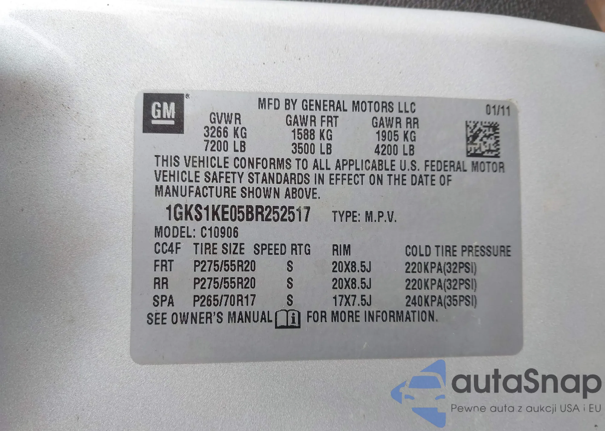 LOT: 44236794 VIN: 1GKS1KE05BR252517