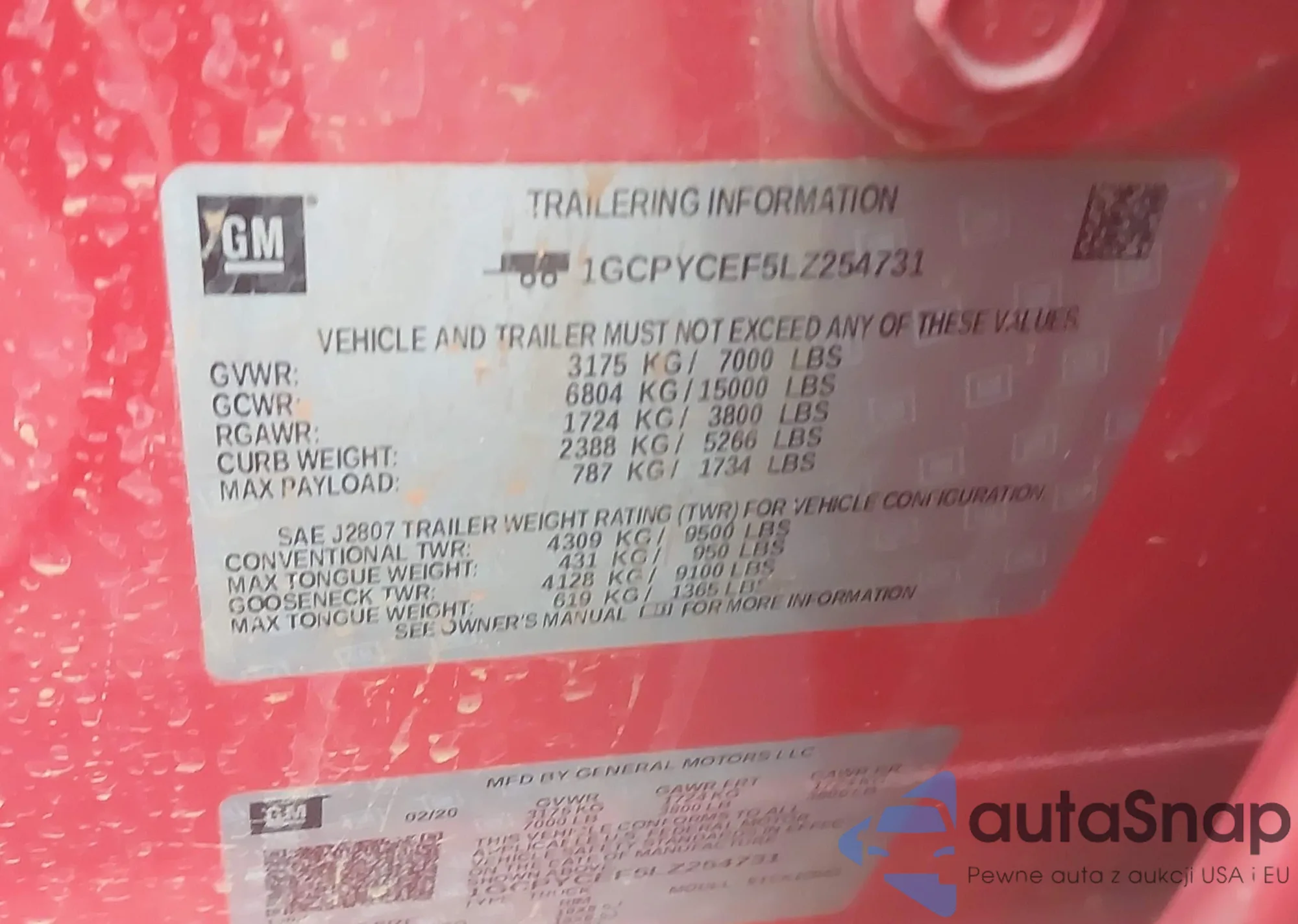 LOT: 43566190 VIN: 1GCPYCEF5LZ254731