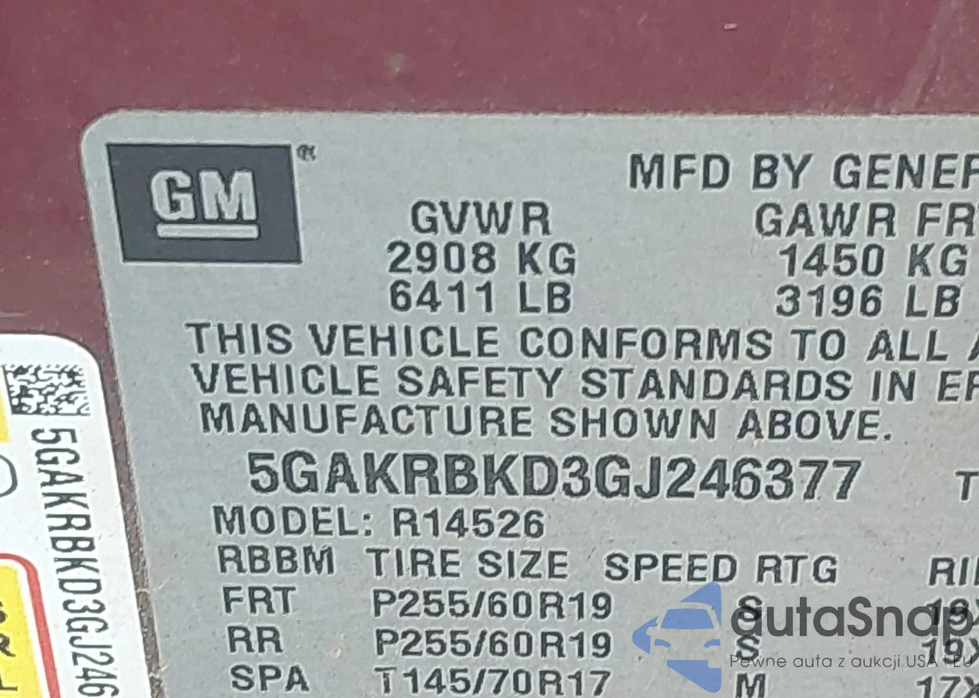 • VIN 5GAKRBKD3GJ246377