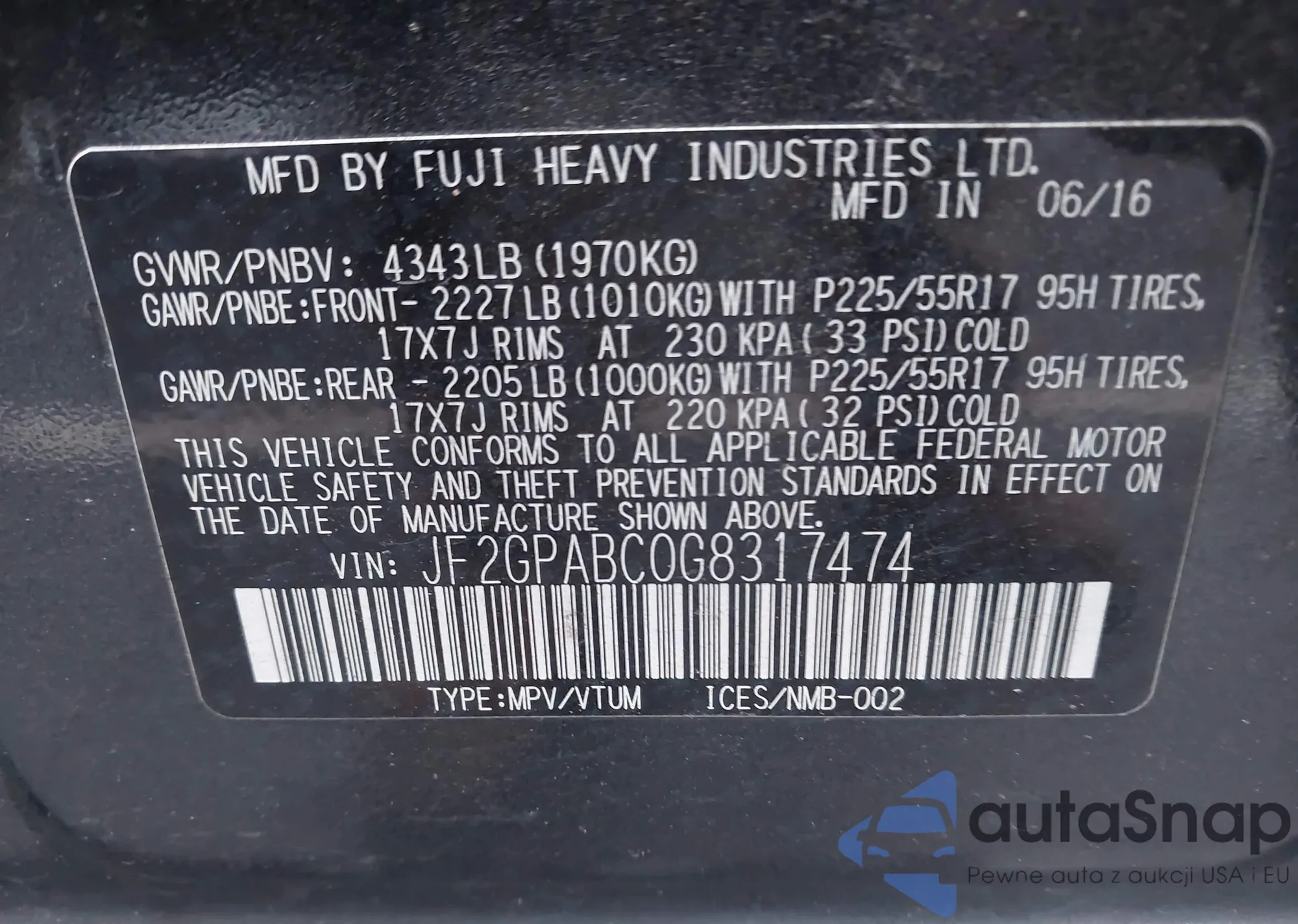 • VIN JF2GPABC0G8317474