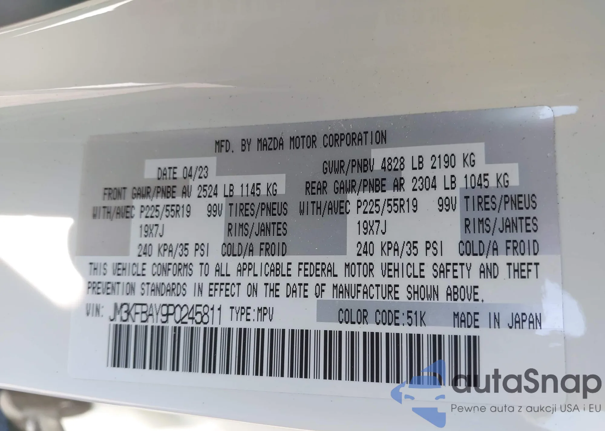 LOT: 42847576 VIN: JM3KFBAY9P0245811