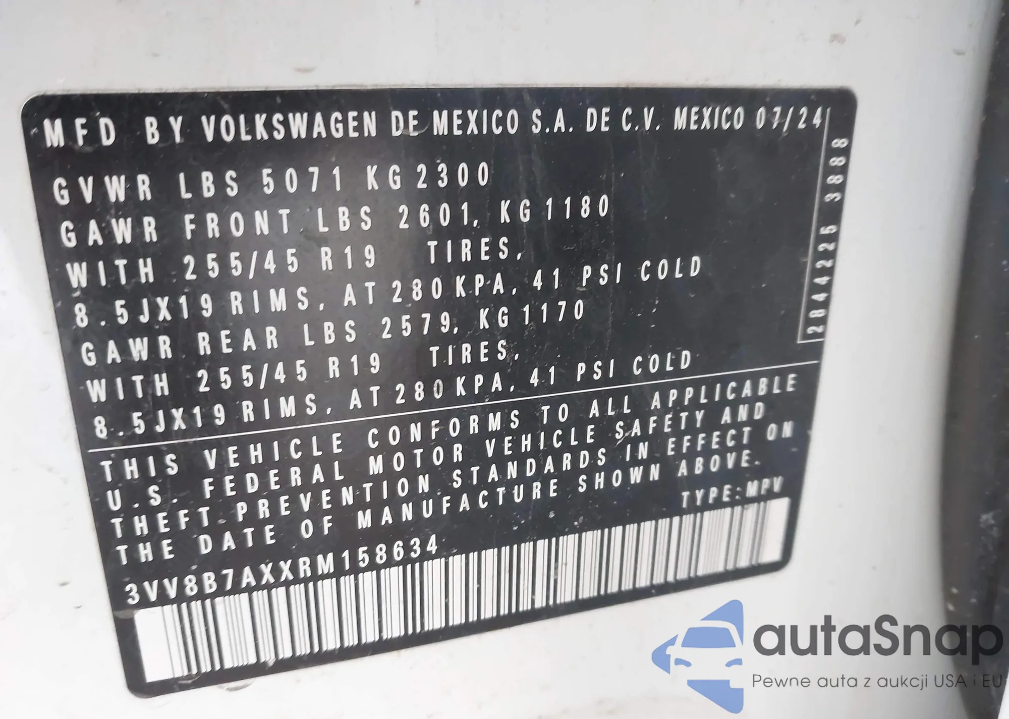 • VIN 3MVDMBXY1RM626453