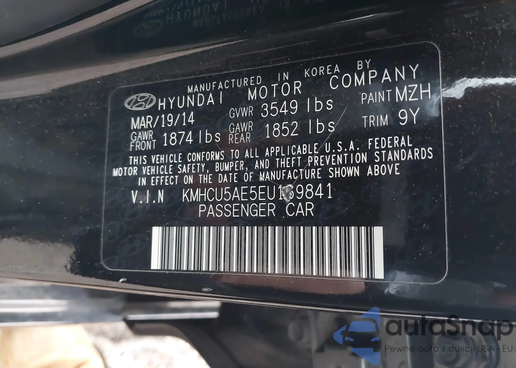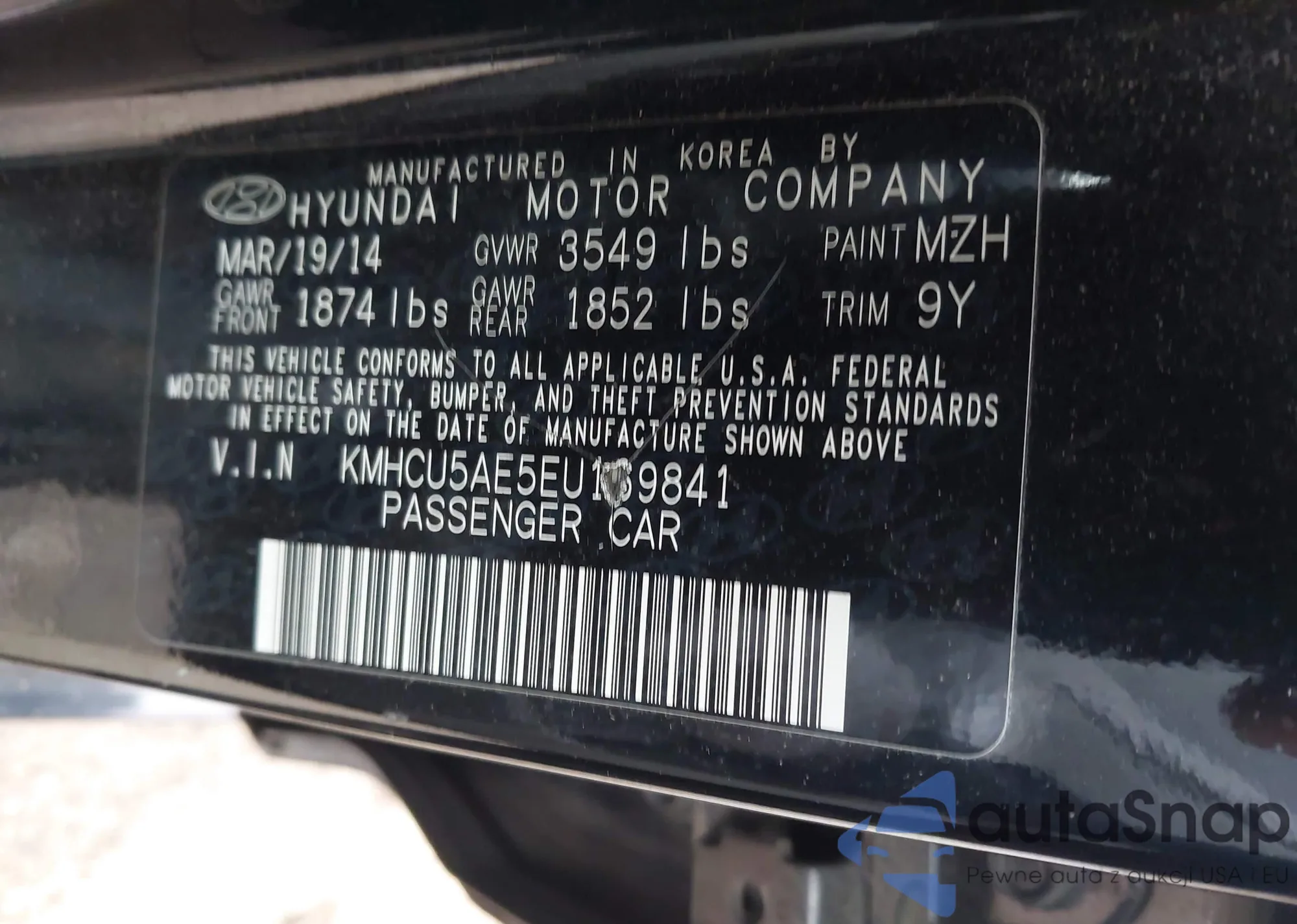 • VIN KMHCU5AE5EU169841