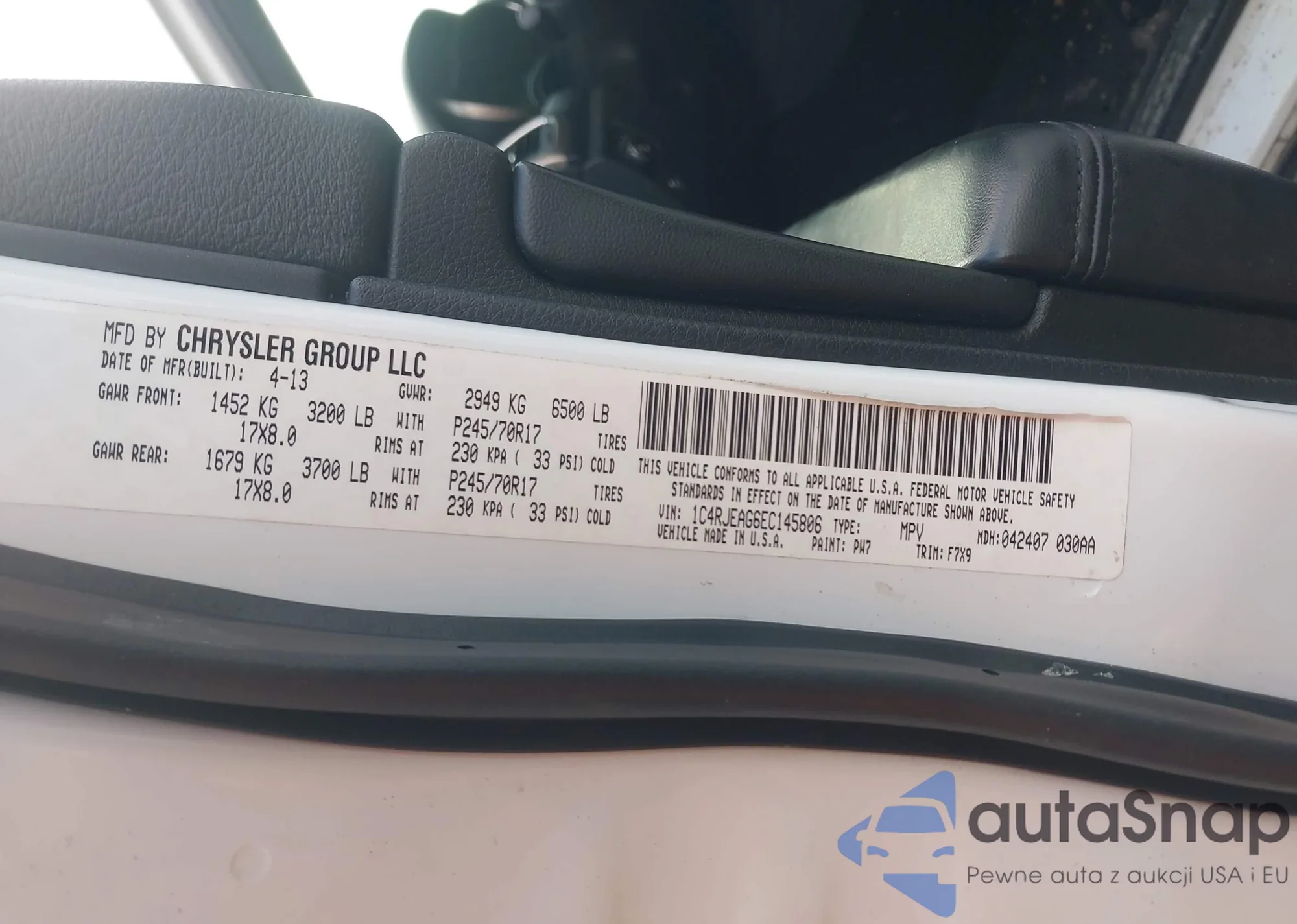 • VIN 1C4RJEAG6EC145806
