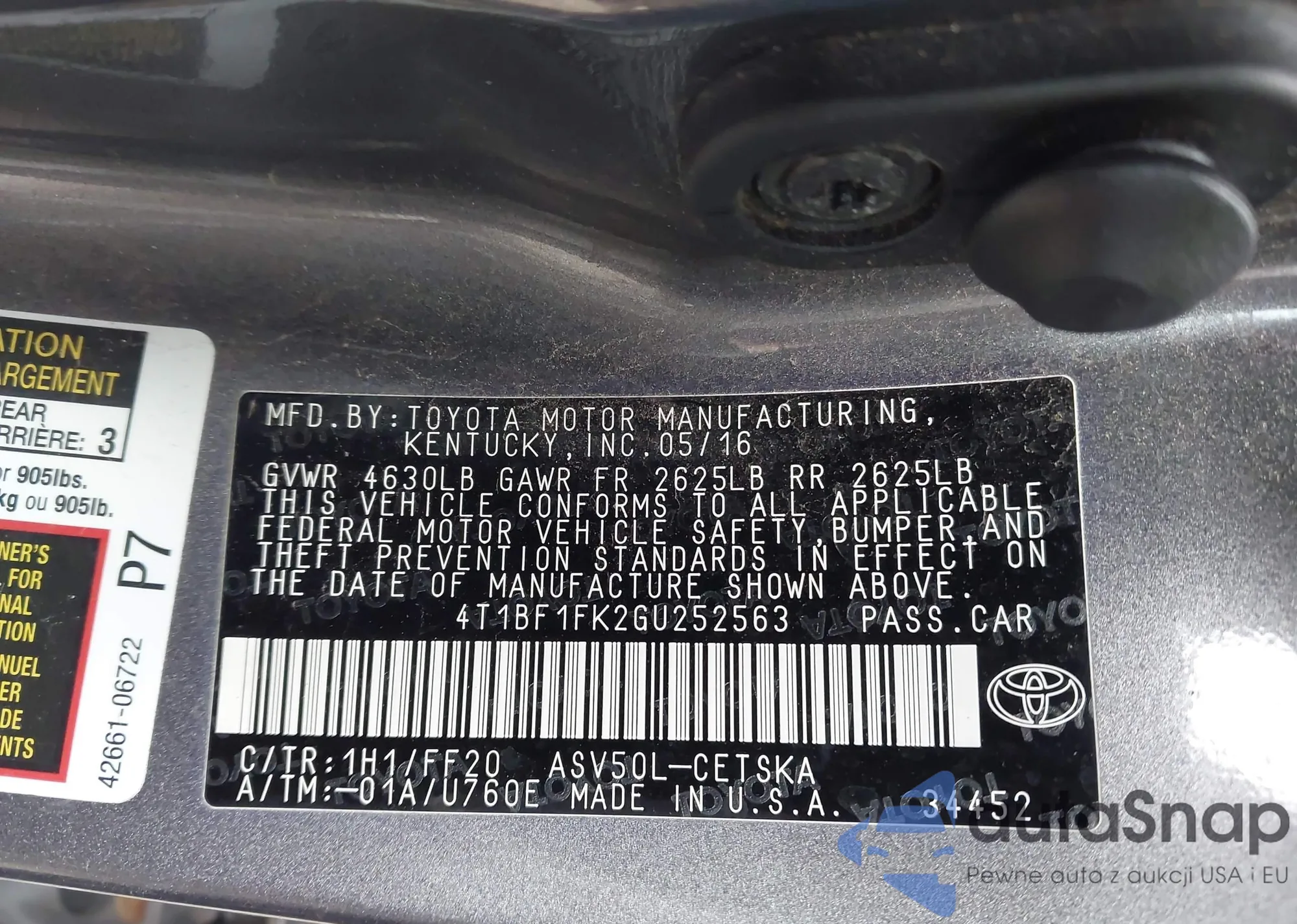 • VIN 4T3ZA3BB9DU071753