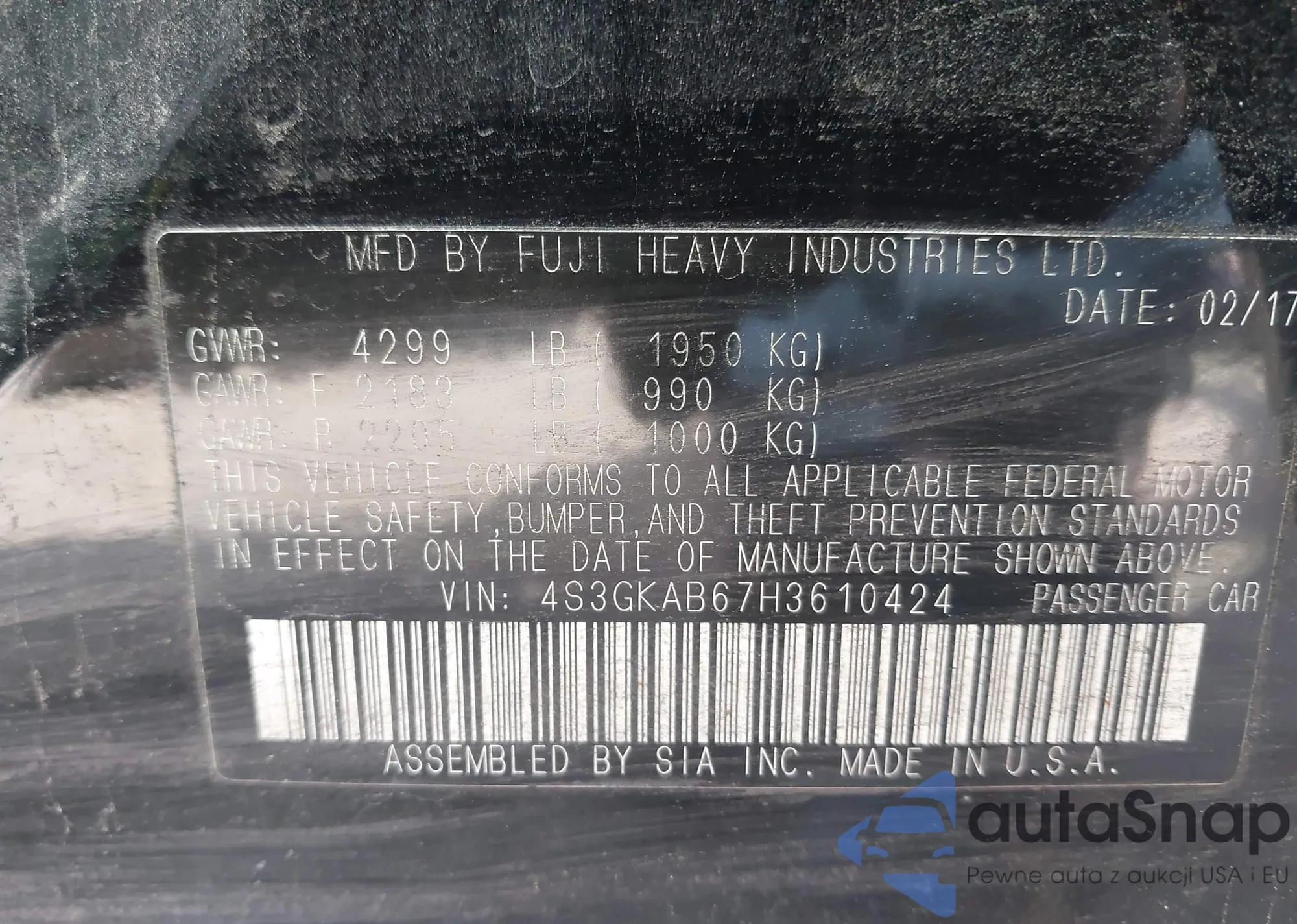 • VIN 4S3GKAB67H3610424