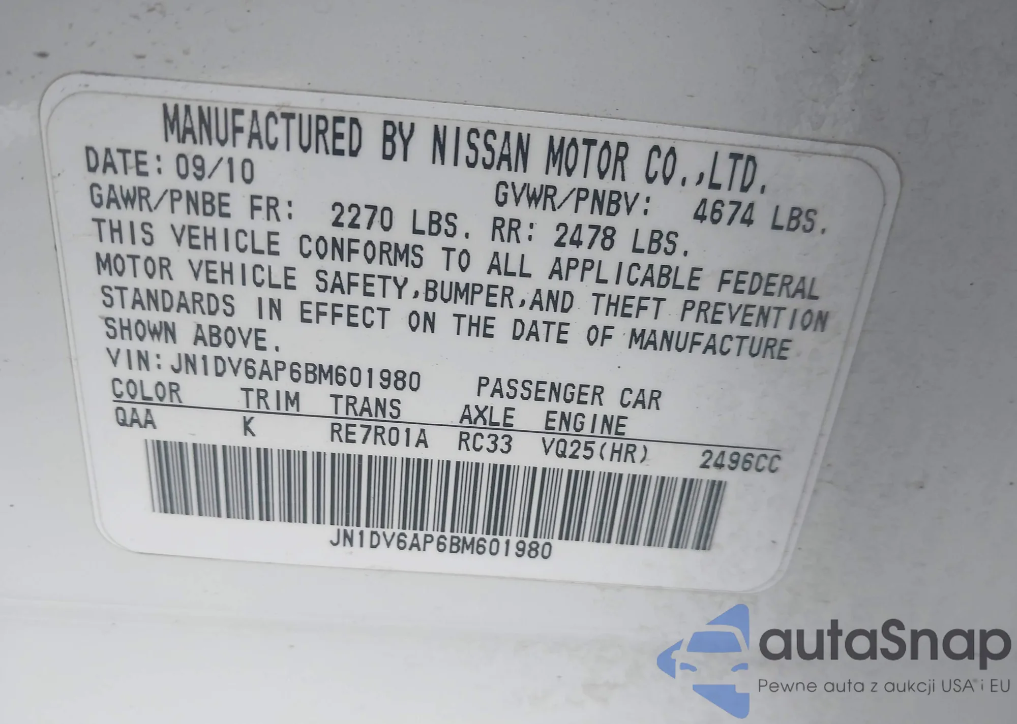 • VIN JN1DV6AP6BM601980