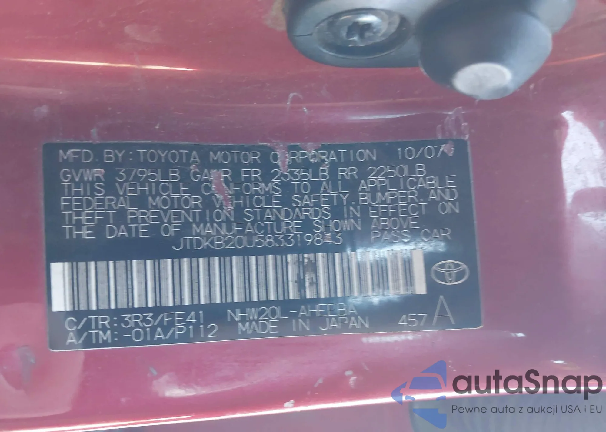 LOT: 44083213 VIN: JTDKB20U583319843