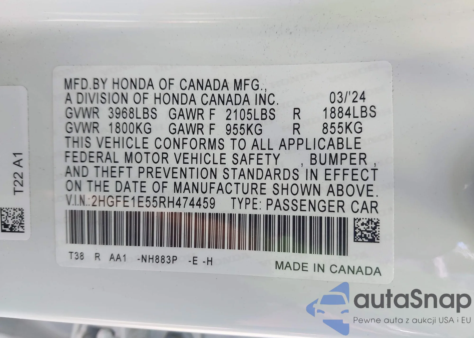 • VIN 2HGFE1E55RH474459