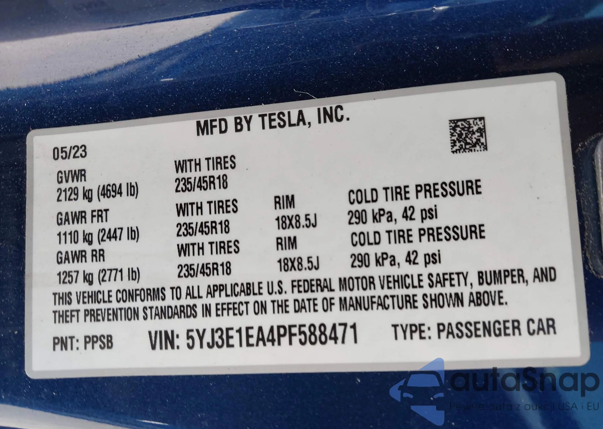 LOT: 43835221 VIN: 5YJSA1E12FF118221